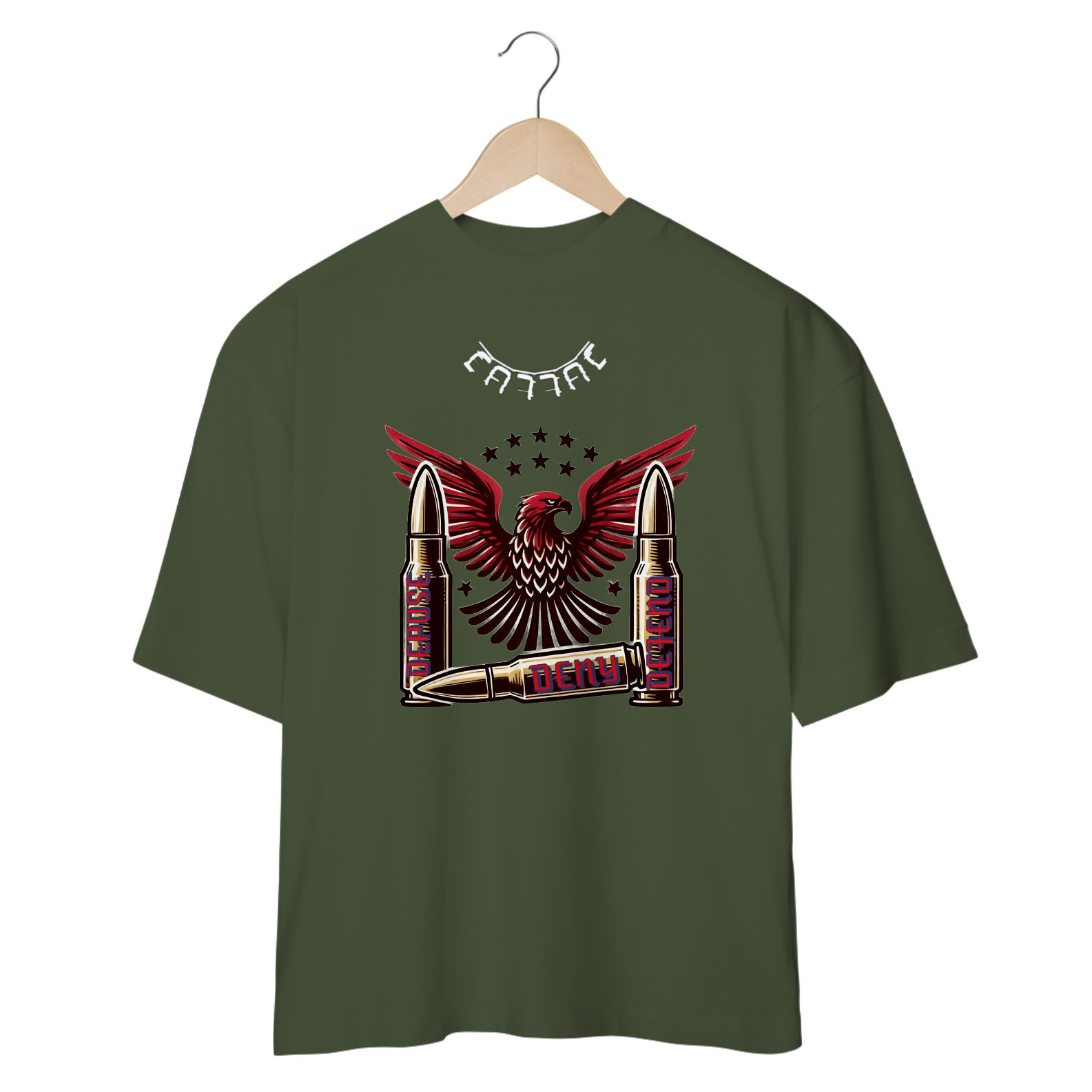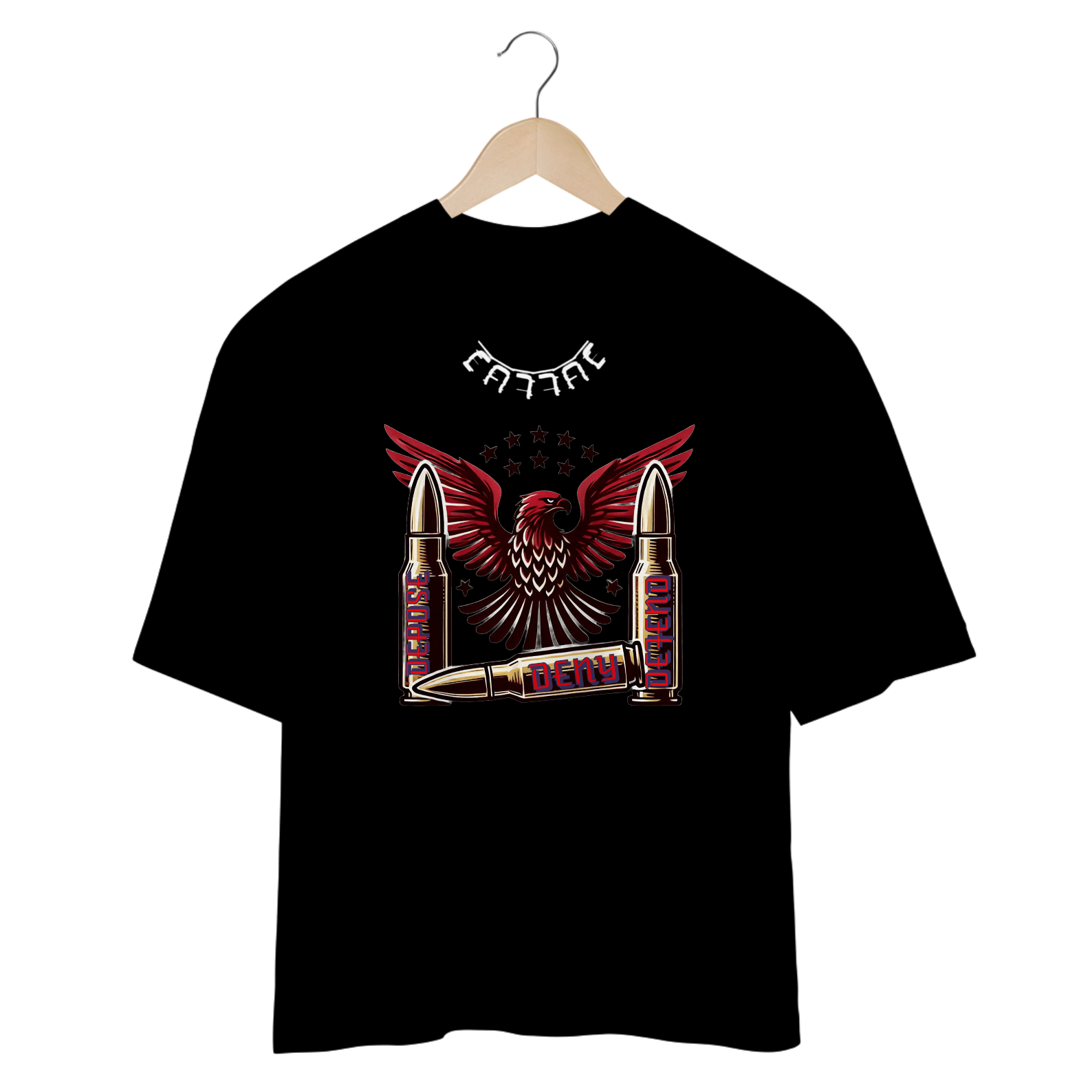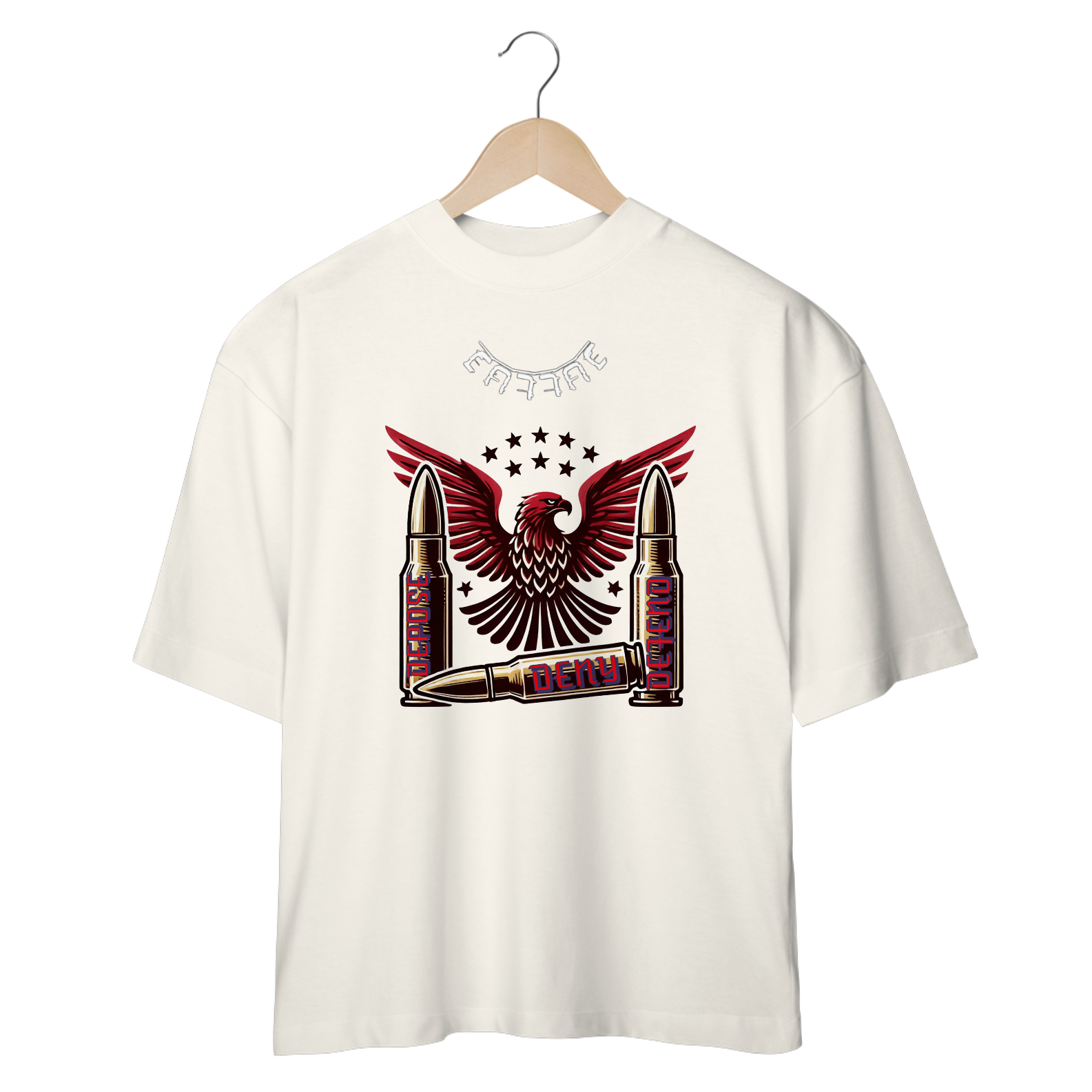 Eleve seu estilo com a nossa exclusiva camisa oversize com estampa 3D "Deny Defend Depose". Confeccionada em tecido de alta qualidade e design moderno, esta camisa é perfeita para quem busca conforto e atitude.