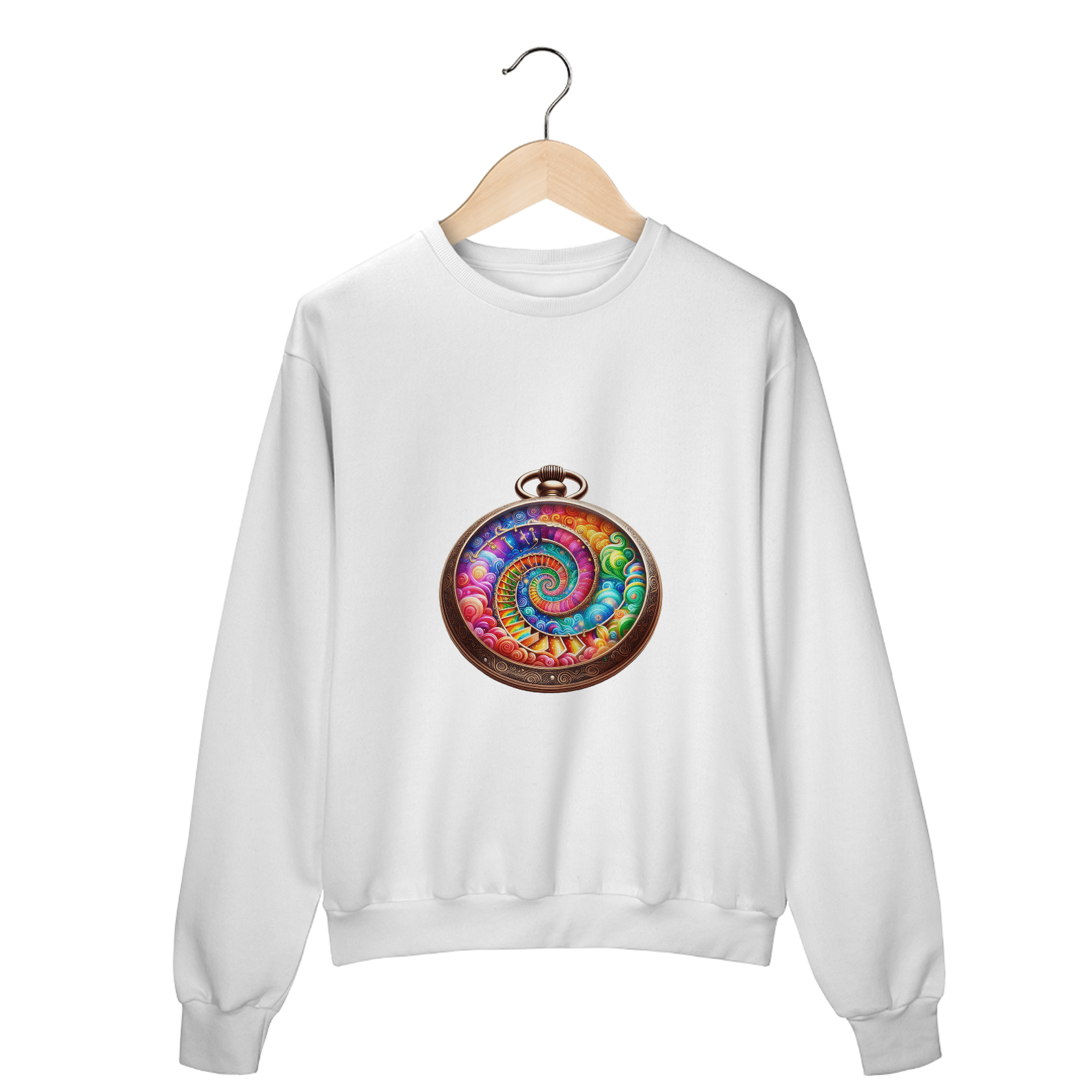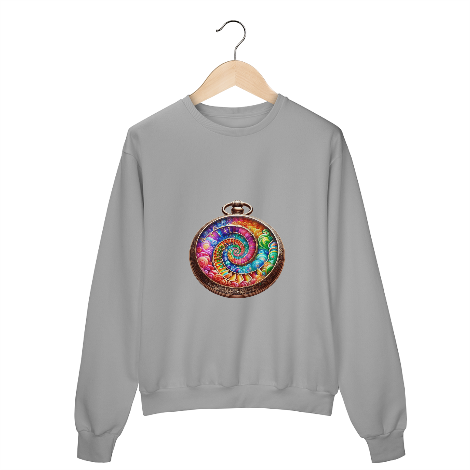 Envolva-se no conforto e estilo com este moletom fechado de algodão. Perfeito para os dias mais frios, ele oferece um ajuste confortável e um design que chama a atenção. A estampa de relógio de bolso em estilo boho mistura elementos vintage com uma vibe artística e descontraída, ideal para quem adora moda com personalidade. Este moletom é a peça essencial para compor um look casual chic, adicionando um toque de originalidade e charme boêmio ao seu guarda-roupa. Não perca a chance de expressar seu estilo único com esta peça must-have!