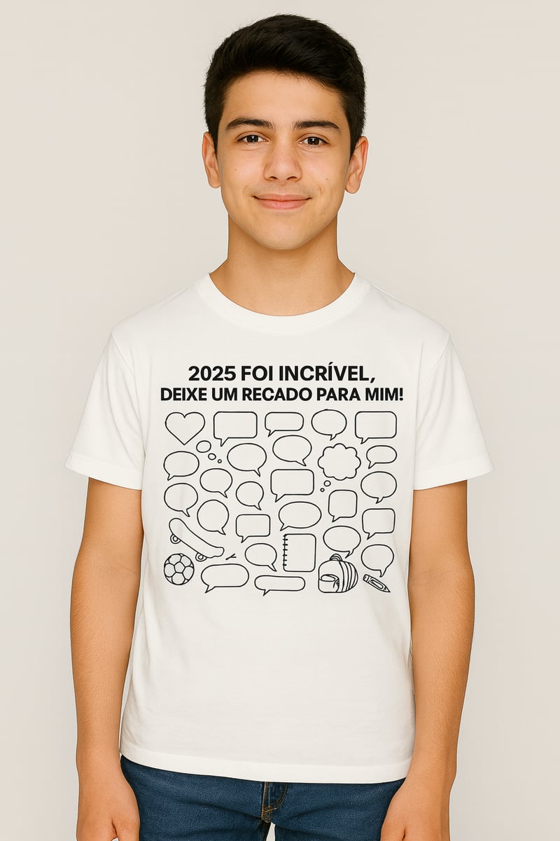 Uma releitura das tradicionais camisetas assinadas no ultimo dia de aula. **CANETA PARA ASSINATURAS NÃO INCLUSA**