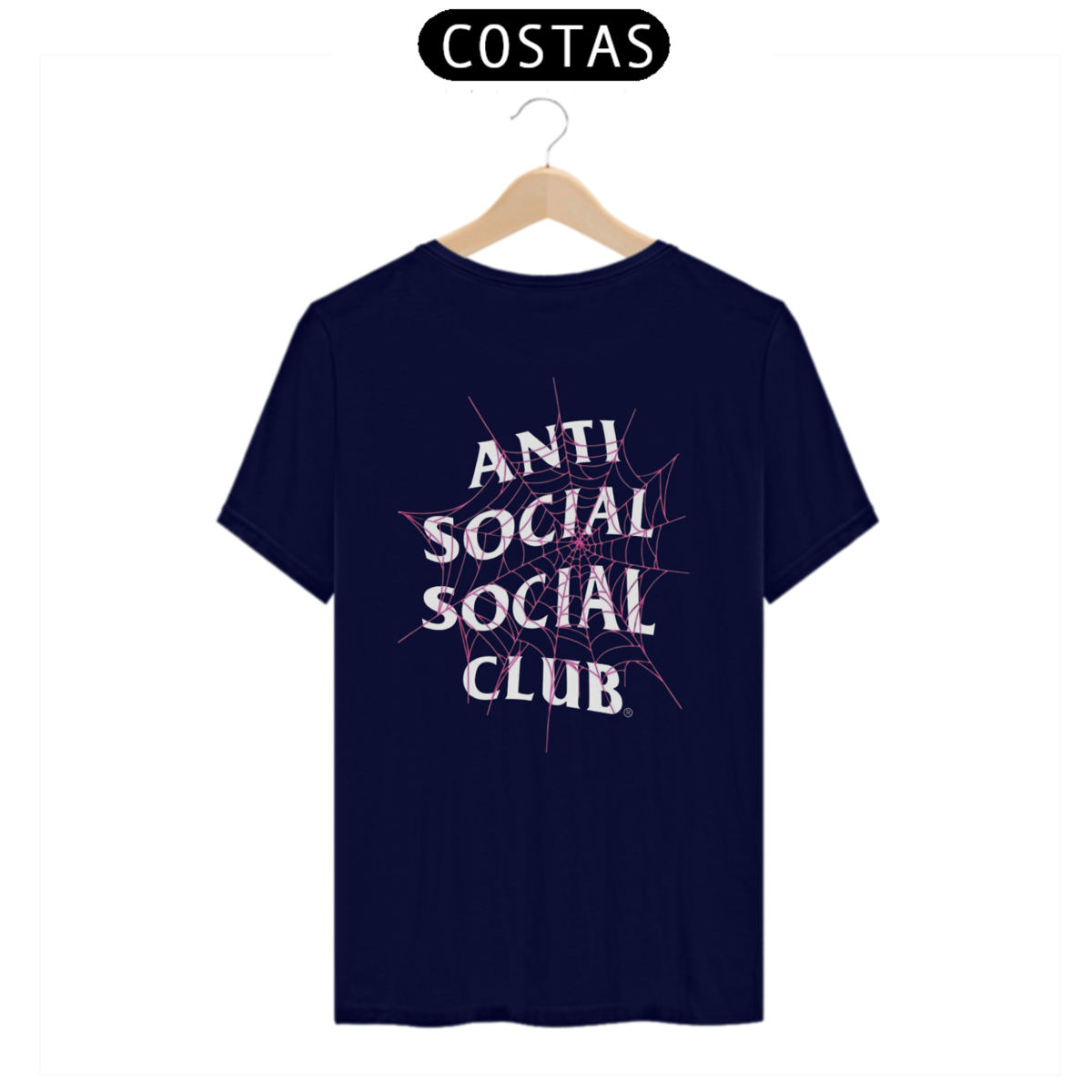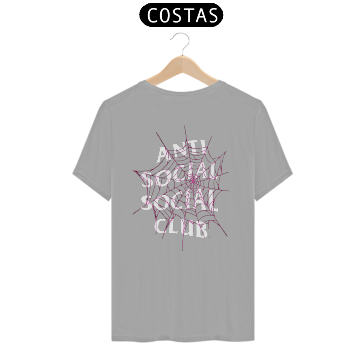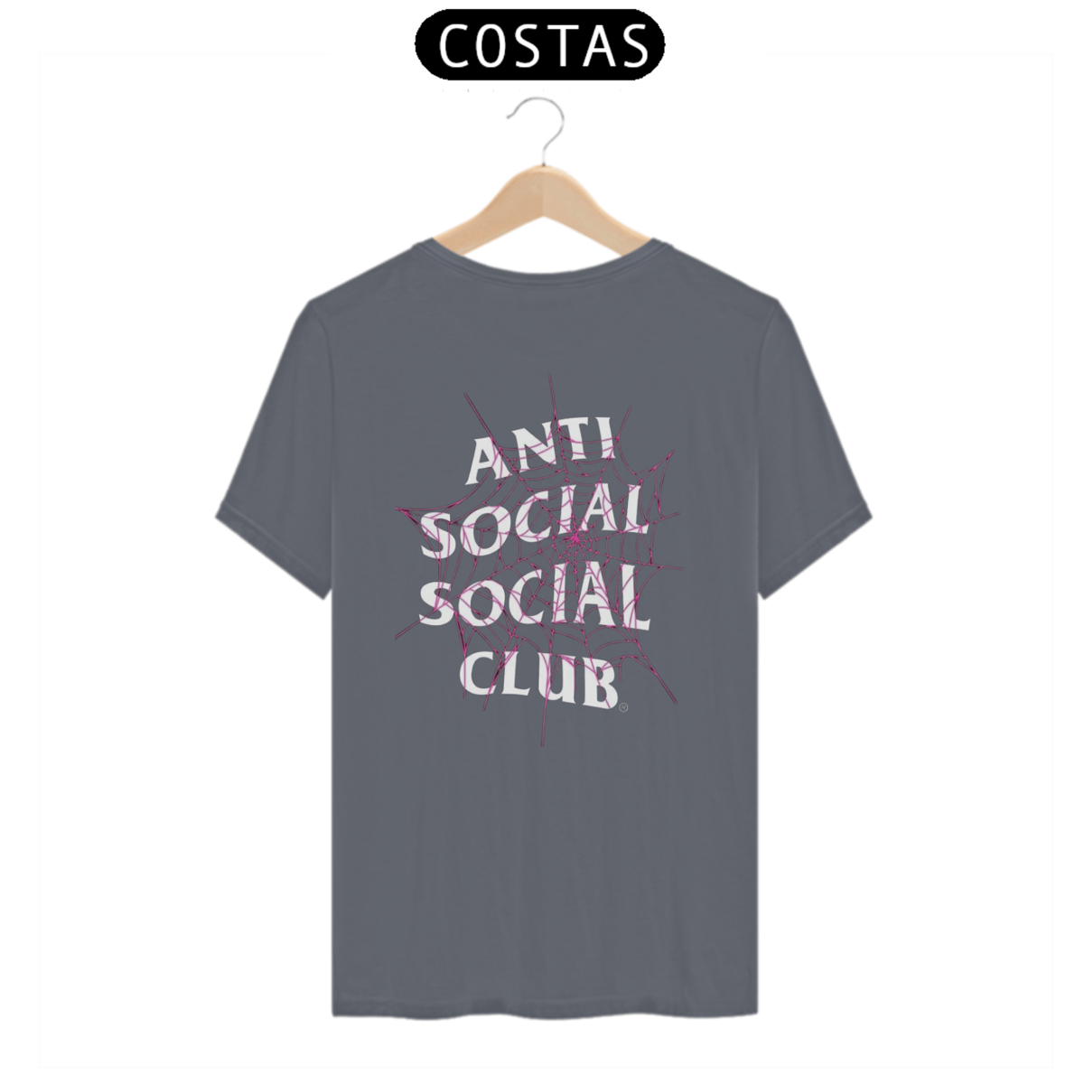 Sob a teia, a frase "Anti Social Club" se destaca em uma fonte robusta e confiante. Cada letra é uma afirmação da individualidade e da autenticidade, uma celebração da escolha de seguir o próprio caminho, mesmo que isso signifique ir contra as convenções sociais.