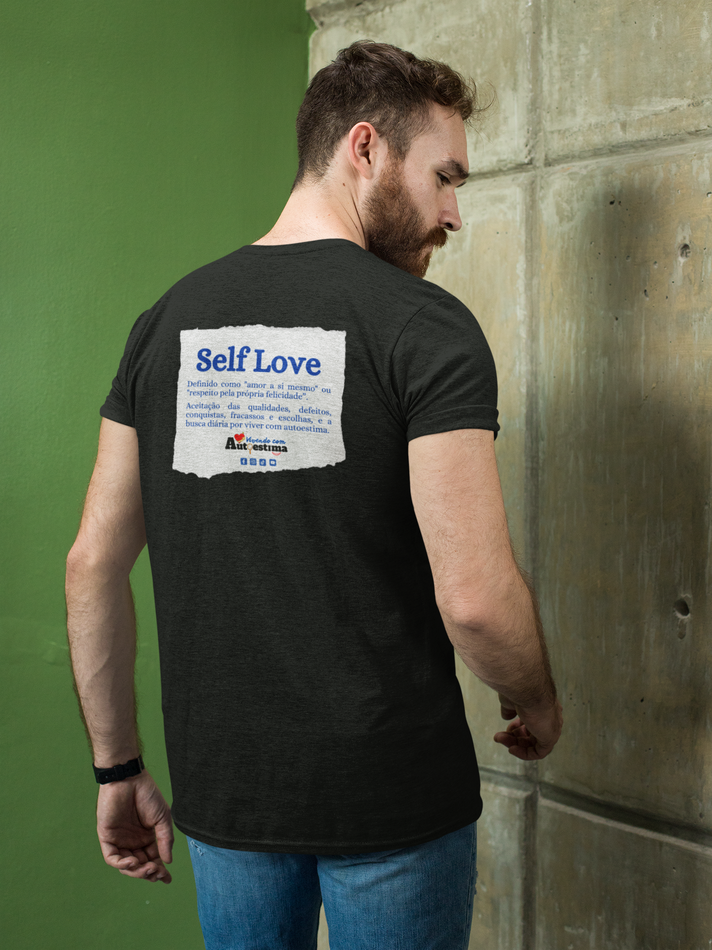Uma camiseta Basic com estampa na frente e nas costas, vamos espalhar a mensagem do amor-próprio.