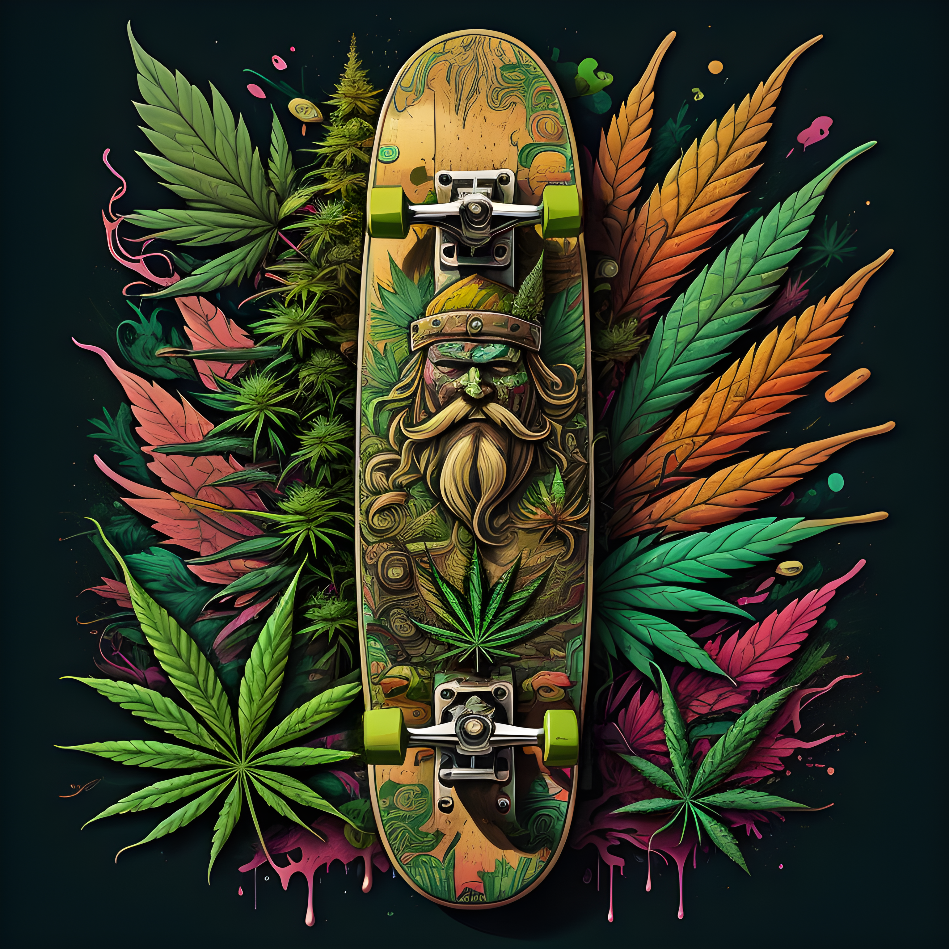 Seja um skatista maconhista com estilo com a camiseta "Skatista Maconhista". Ela é feita de algodão 1% e estampada com uma arte digital exclusiva. Confortável, estilosa e perfeita para qualquer ocasião.