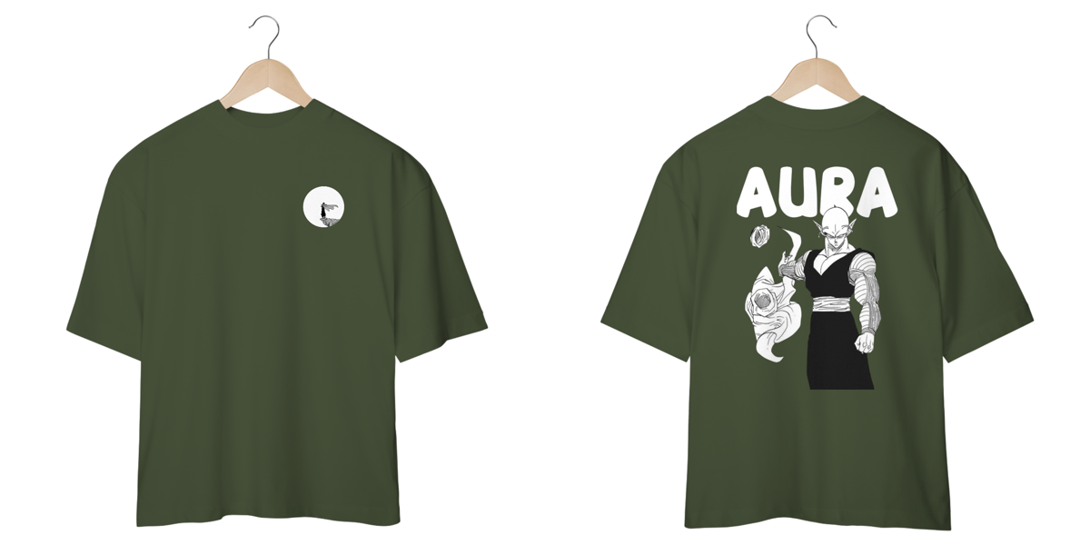 Esta camiseta AURA é o manifesto do fã de Dragon Ball que busca uma peça madura e autêntica. A estampa minimalista em P&B sobre o verde militar resgata a imponência Namekian e a transporta para a rua, mantendo o visual clean e a atitude urbana.