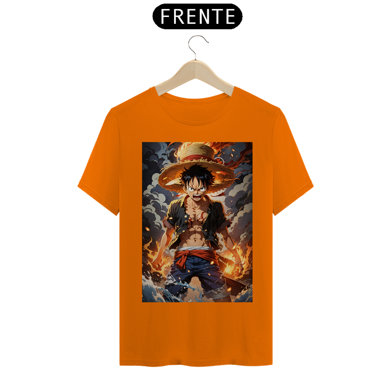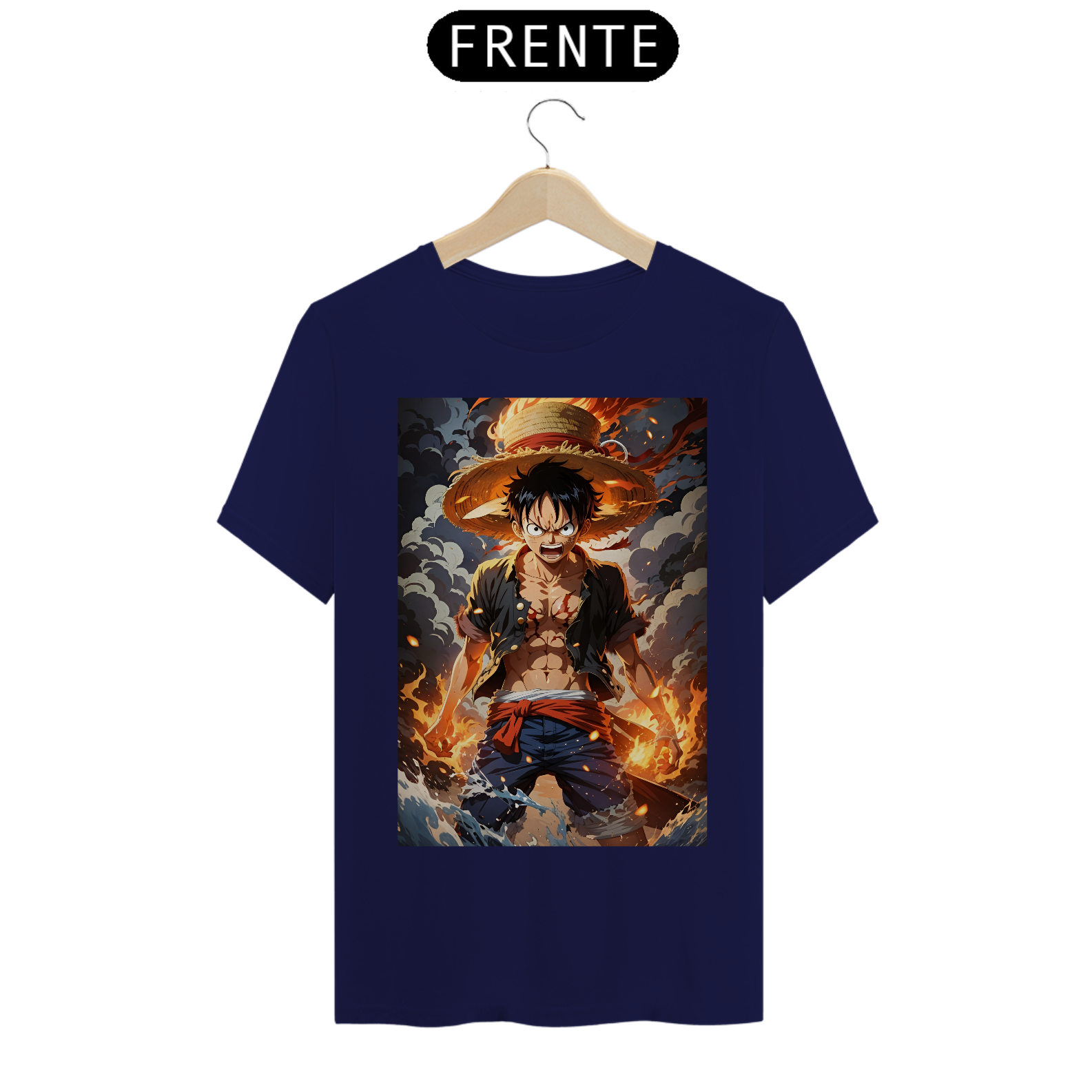 Estampa inspirada na personagem de mangá One Piece, as aventuras de as aventuras de Luffy e a sua tripulação, os Piratas do Chapéu de Palha, exploram a Grand Line em busca do tesouro mais procurado do mundo.