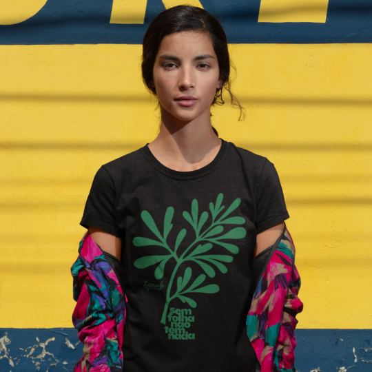 Carregue a força das raízes africanas com estilo e propósito com a baby look Use Laroyê. Confeccionada em tecido confortável e de alta qualidade, essa peça é mais do que uma roupa – é um manifesto de fé e ancestralidade. Na frente, a marca discreta reforça sua identidade. Nas costas, a frase poderosa "Sem Folha Não Tem Nada" ganha destaque, acompanhada por uma estampa moderna inspirada na arruda, a erva de proteção e purificação.