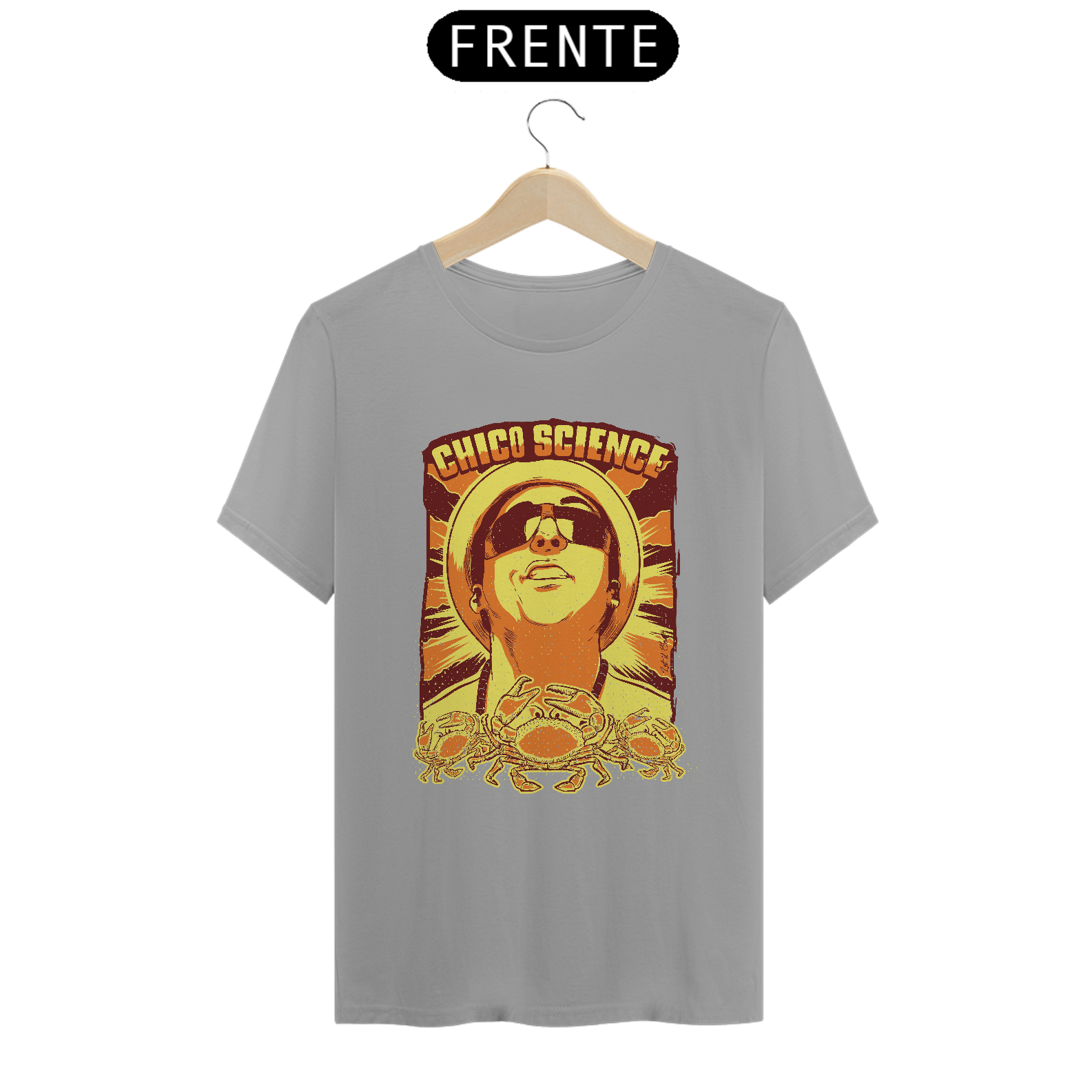 Claro que o imortal cantor e compositor pernambucano Chico Science, um dos principais responsáveis do movimento manguebeat, tem um print em sua homenagem. Usar esta T-shirt é celebrar a sua obra! Ideal para ser usada na faculdade, no happy hour, na próxima viagem.
