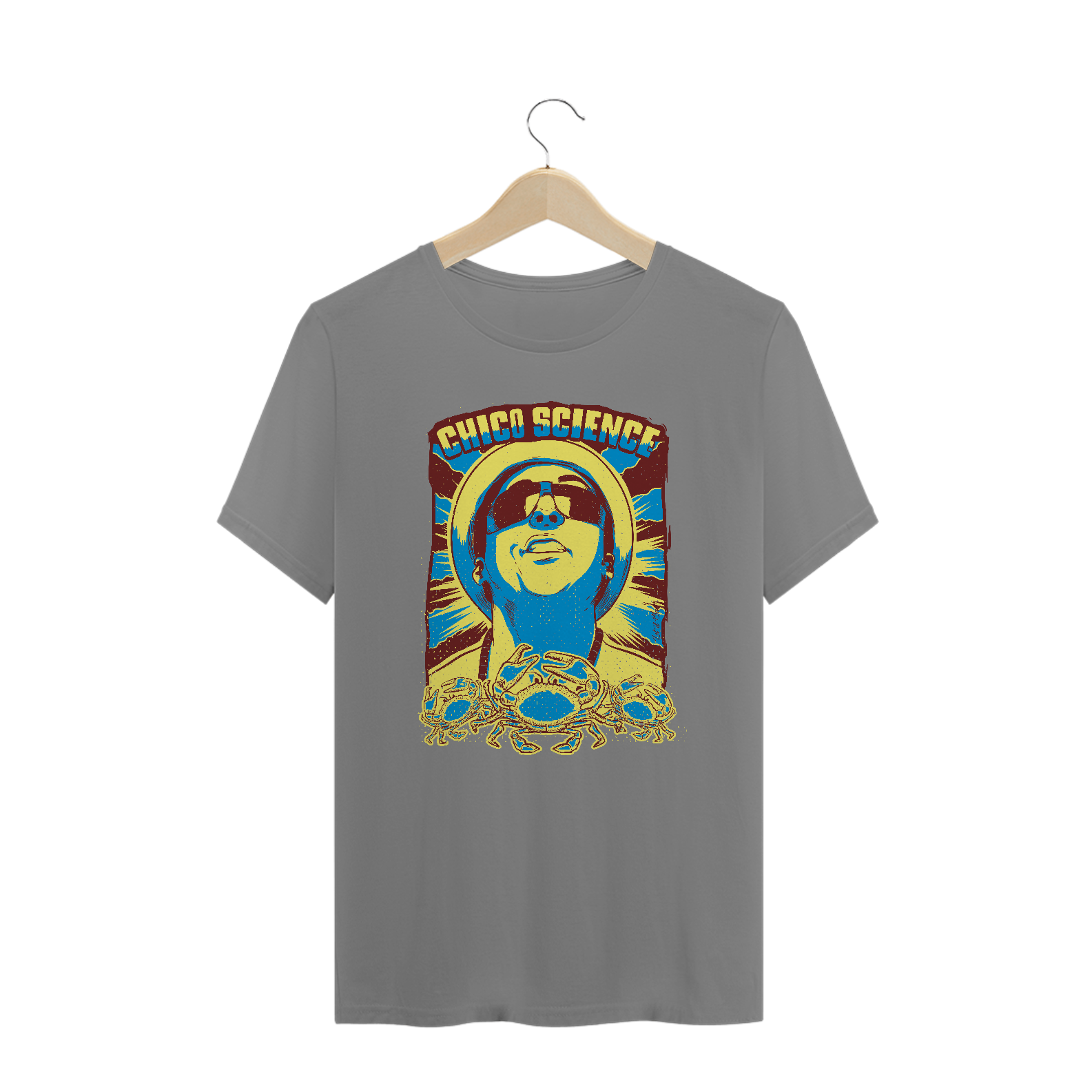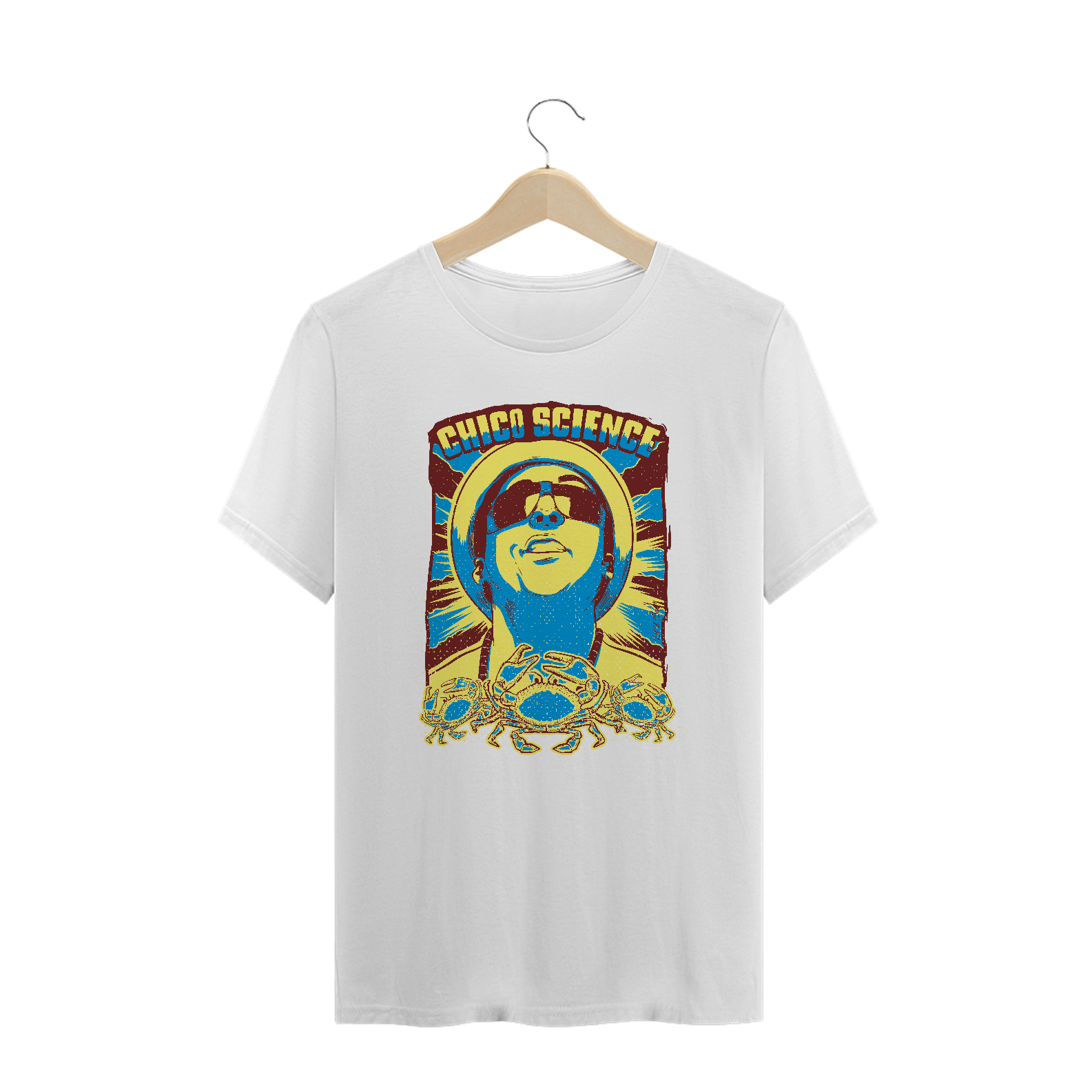 Claro que o imortal cantor e compositor pernambucano Chico Science, um dos principais responsáveis do movimento manguebeat, tem um print em sua homenagem. Usar esta T-shirt é celebrar a sua obra! Ideal para ser usada na faculdade, no happy hour, na próxima viagem.
