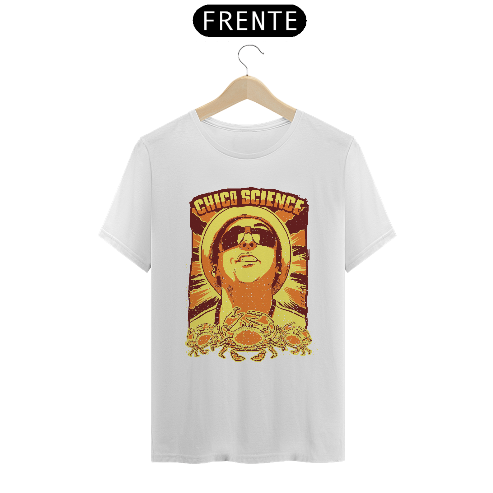 Claro que o imortal cantor e compositor pernambucano Chico Science, um dos principais responsáveis do movimento manguebeat, tem um print em sua homenagem. Usar esta T-shirt é celebrar a sua obra! Ideal para ser usada na faculdade, no happy hour, na próxima viagem.