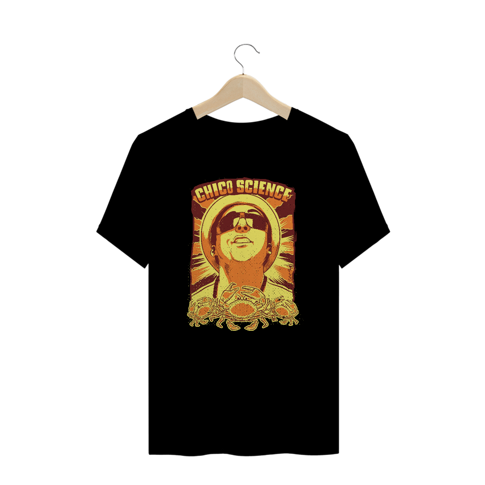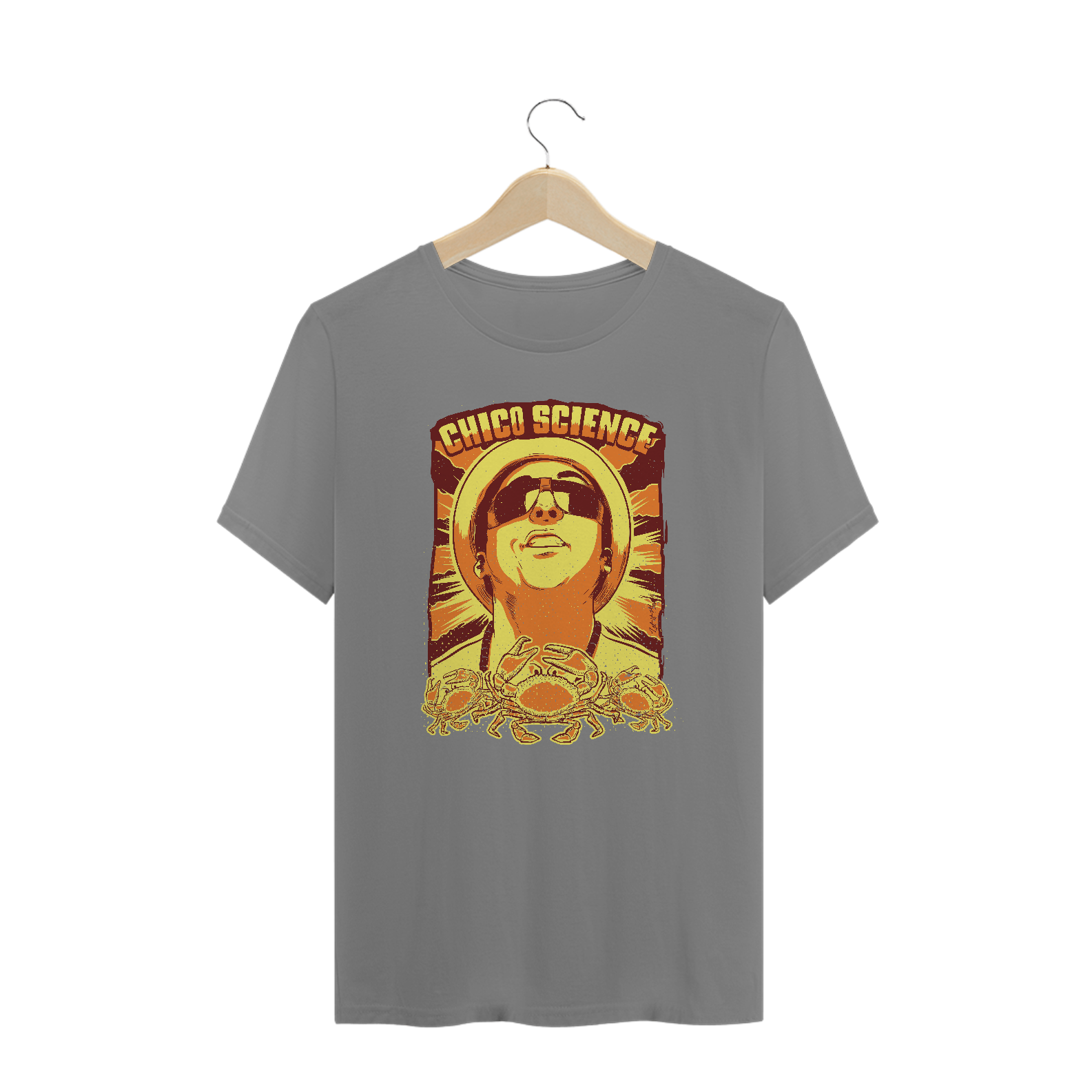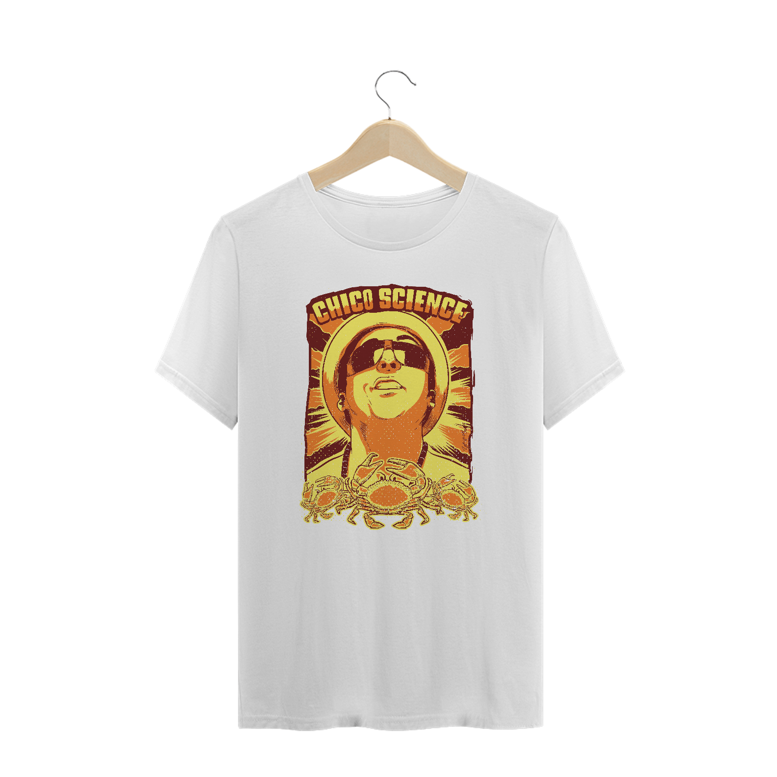 Claro que o imortal cantor e compositor pernambucano Chico Science, um dos principais responsáveis do movimento manguebeat, tem um print em sua homenagem. Usar esta T-shirt é celebrar a sua obra! Ideal para ser usada na faculdade, no happy hour, na próxima viagem.