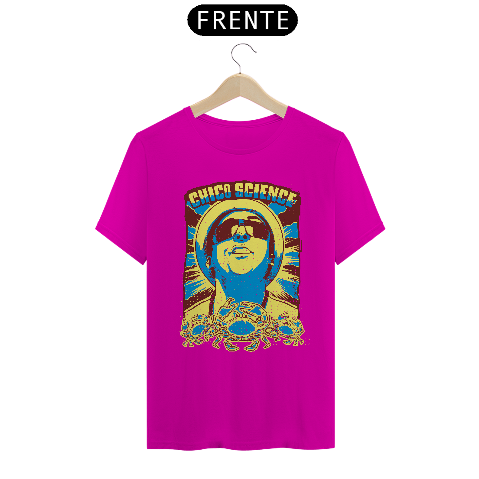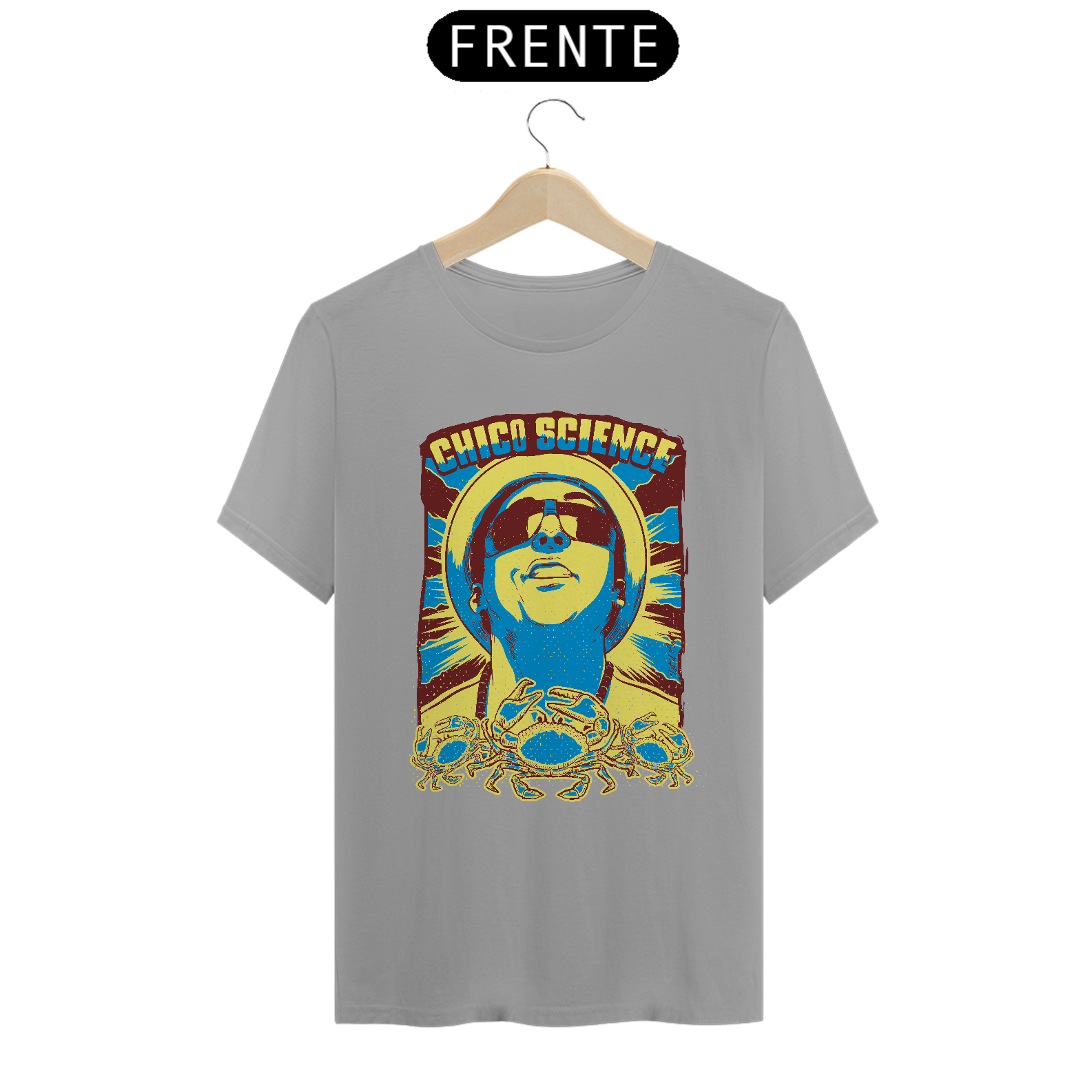 Claro que o imortal cantor e compositor pernambucano Chico Science, um dos principais responsáveis do movimento manguebeat, tem um print em sua homenagem. Usar esta T-shirt é celebrar a sua obra! Ideal para ser usada na faculdade, no happy hour, na próxima viagem.