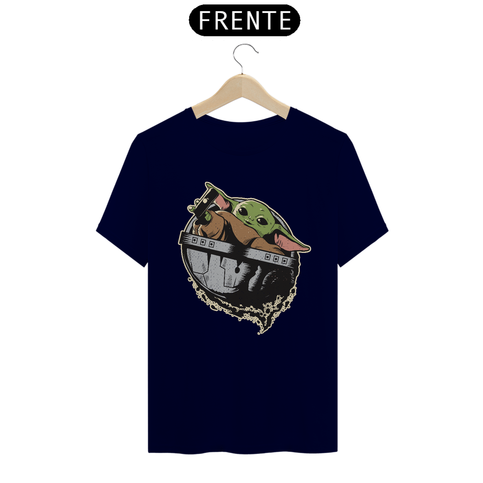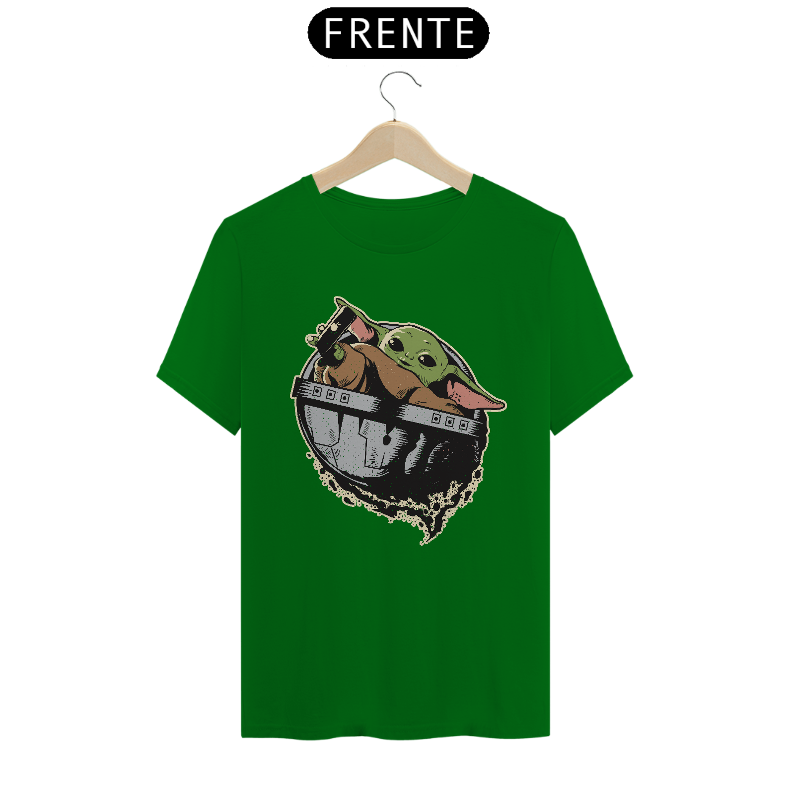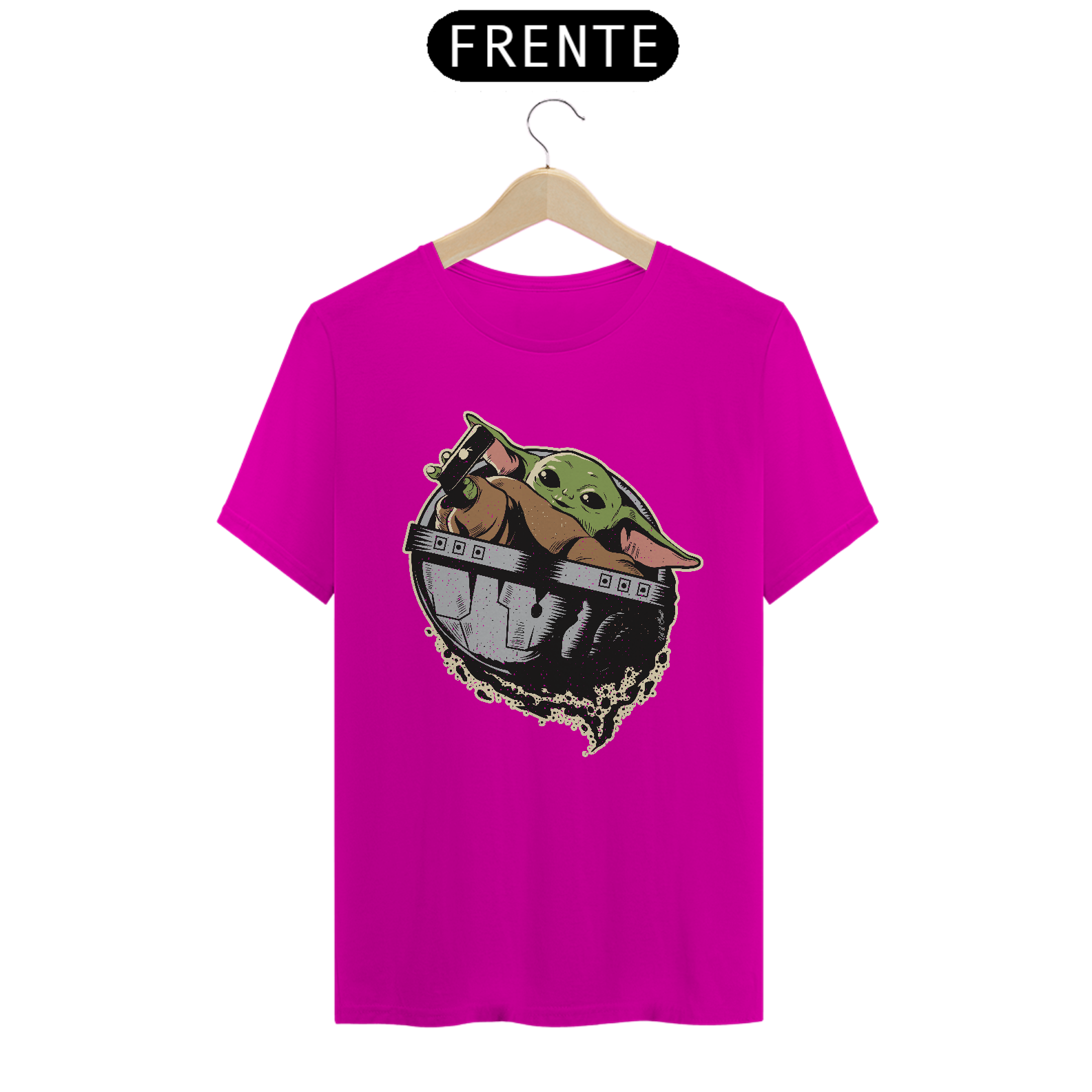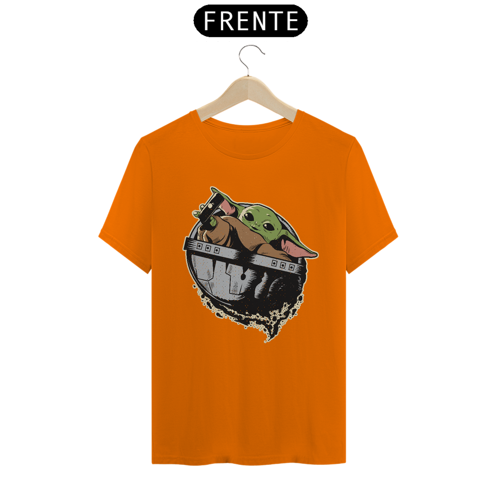 Dá para ser nerd sem abrir mão da fofura e este print do Baby Yoda é a prova disto. Para quem curte o universo Star Wars, esta T-shirt vai fazer muito sucesso no seu guarda-roupa. Ideal para aquela reunião com os amigos geeks na hora de colocar o papo em dia sobre games, HQs, filmes e afins.