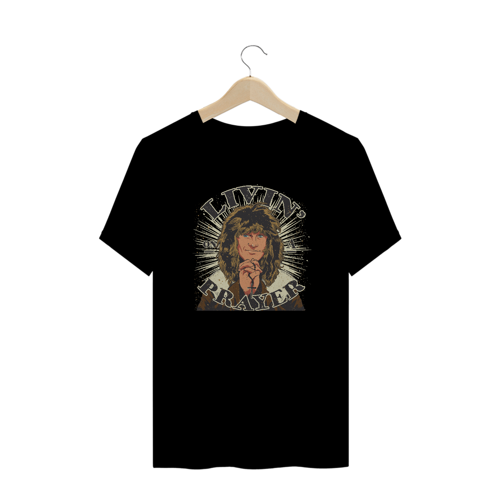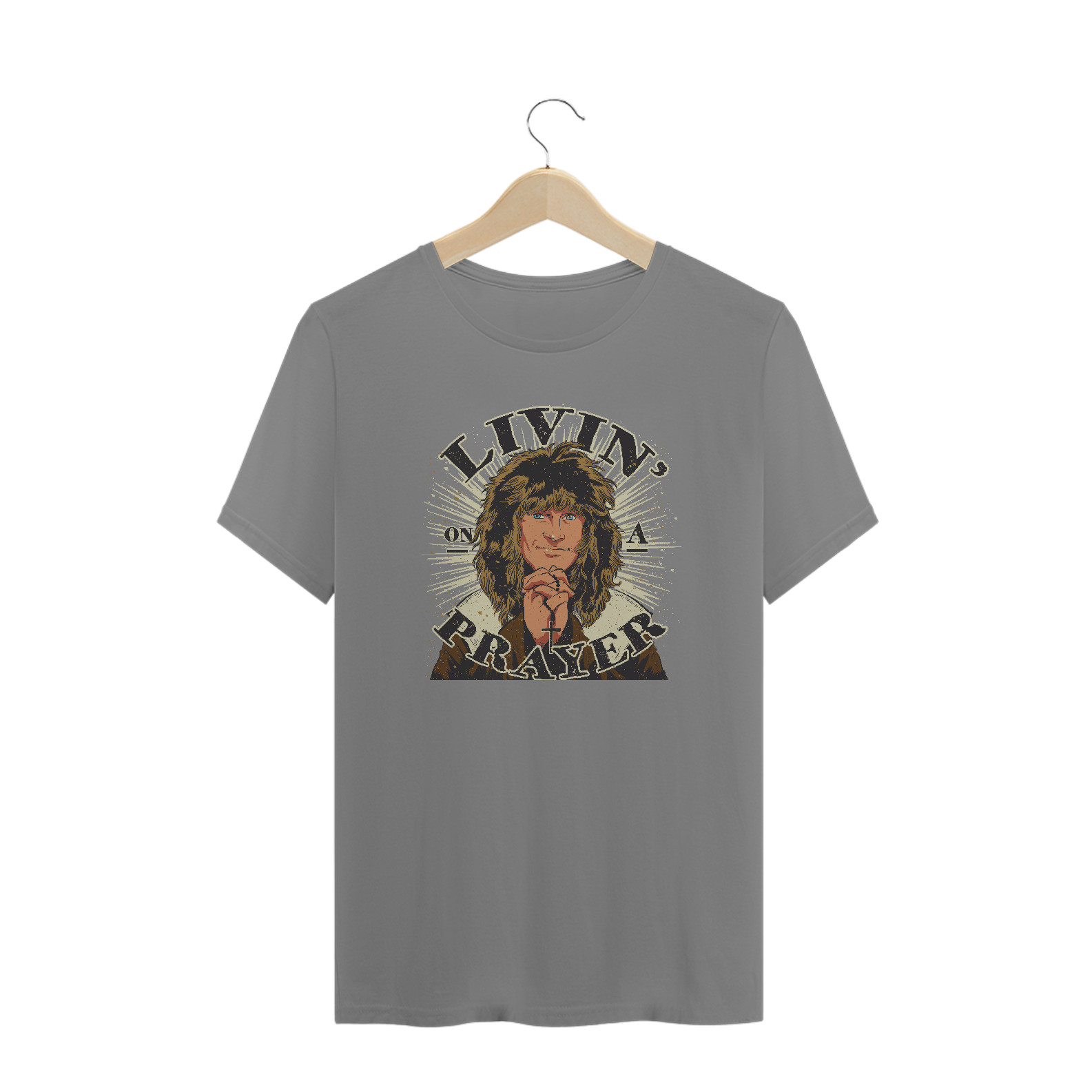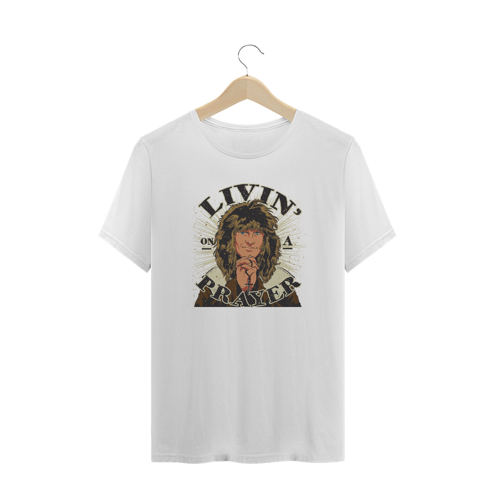 Tem T-shirt do rock irresistível da banda americana Bon Jovi com esse print do mega hit “Livin’ On A Prayer”. Melhor forma de levar a vida com muita positividade e com a energia na frequência certa! Ideal para usar no trabalho, na faculdade, no happy hour ou na próxima viagem.