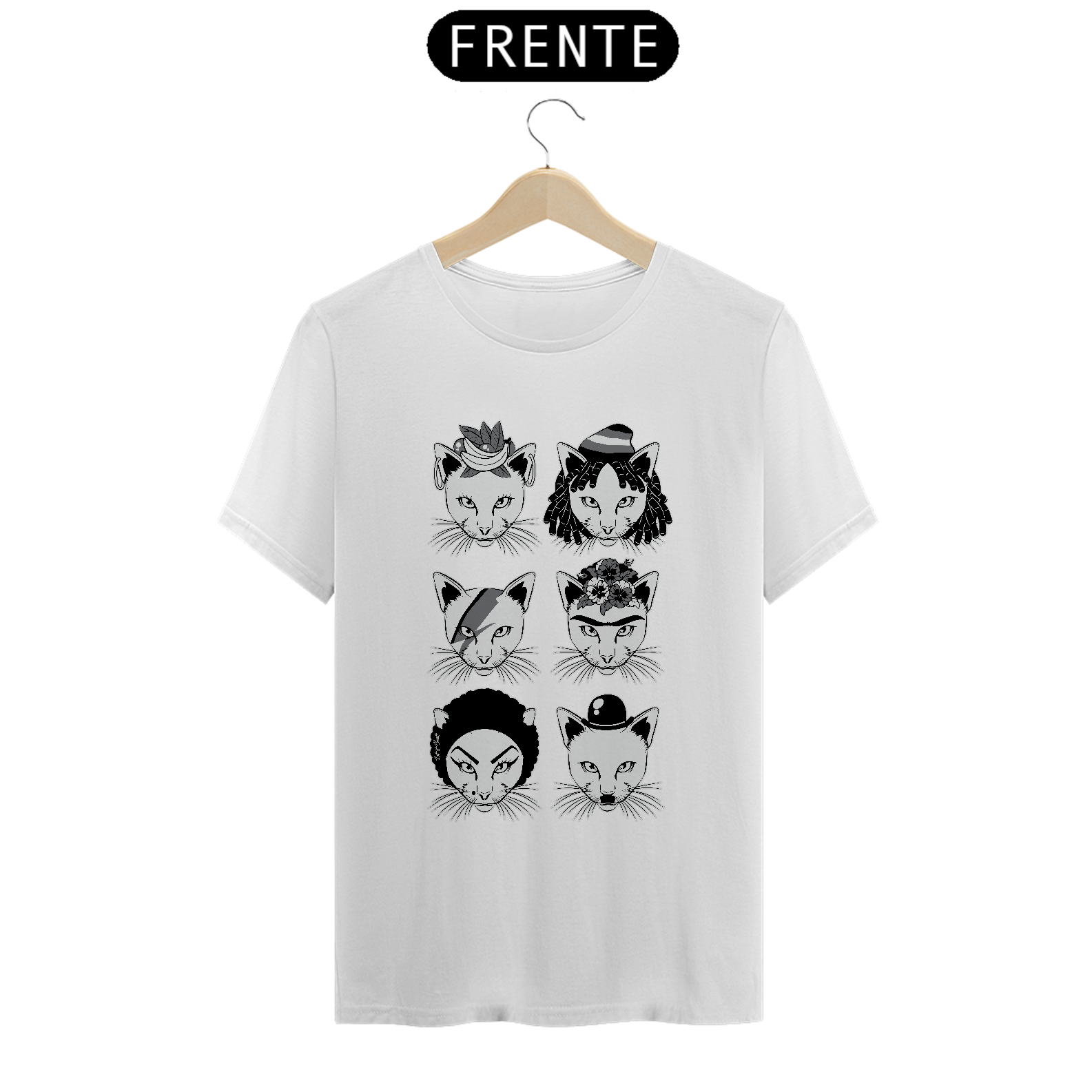 Carmem Miranda, Bob Marley, David Bowie, Frida Kahlo, Elza Soares e Charles Chaplin na versão do musical Cats é um print original que merece a sua atenção. Só mesmo uma T-shirt para proporcionar isto! Ideal para usar no trabalho, na faculdade, no happy hour com a galera.