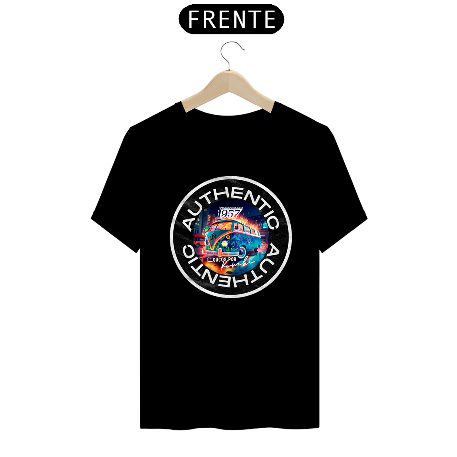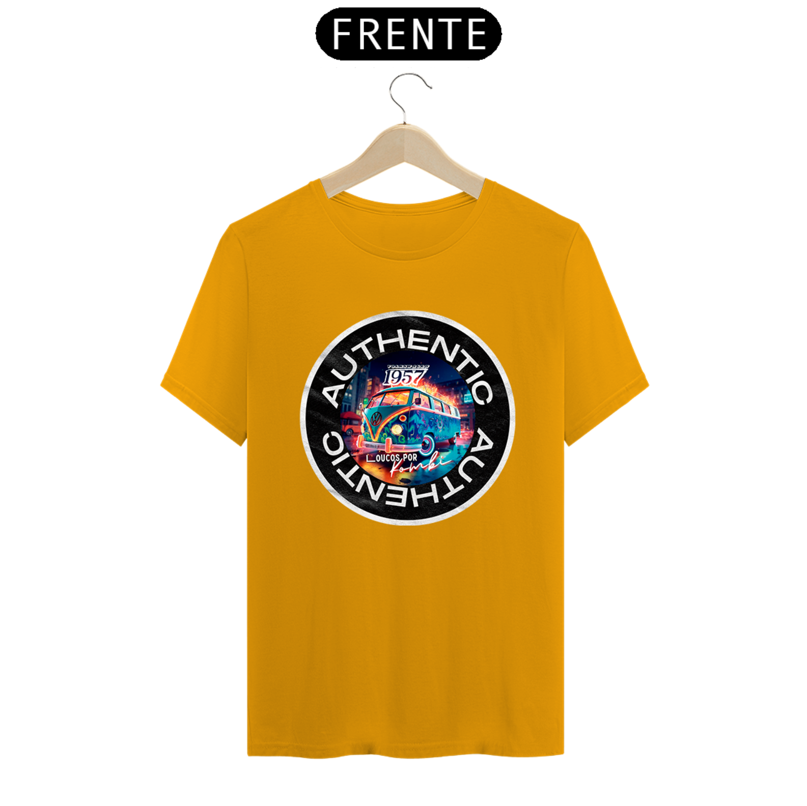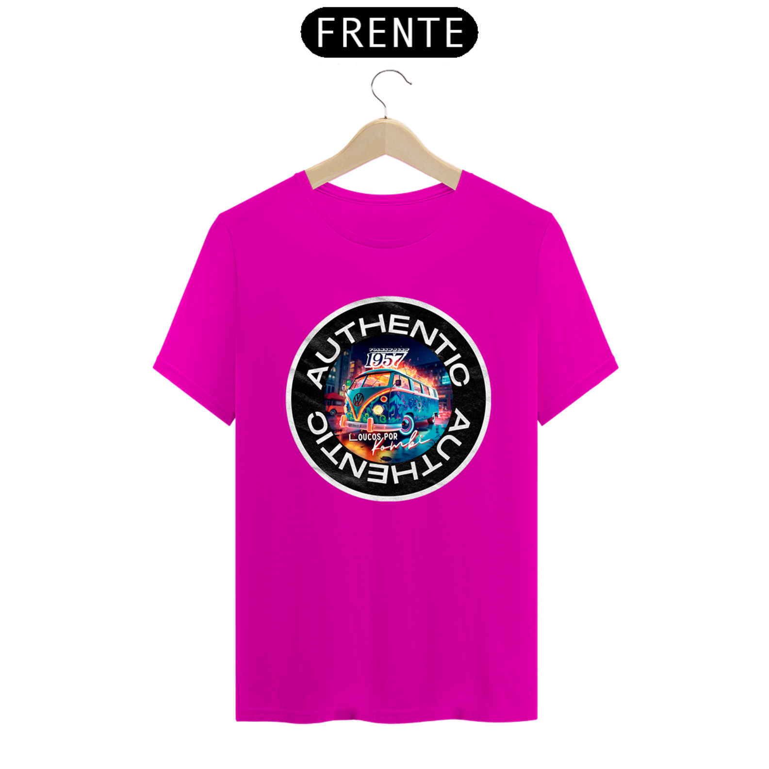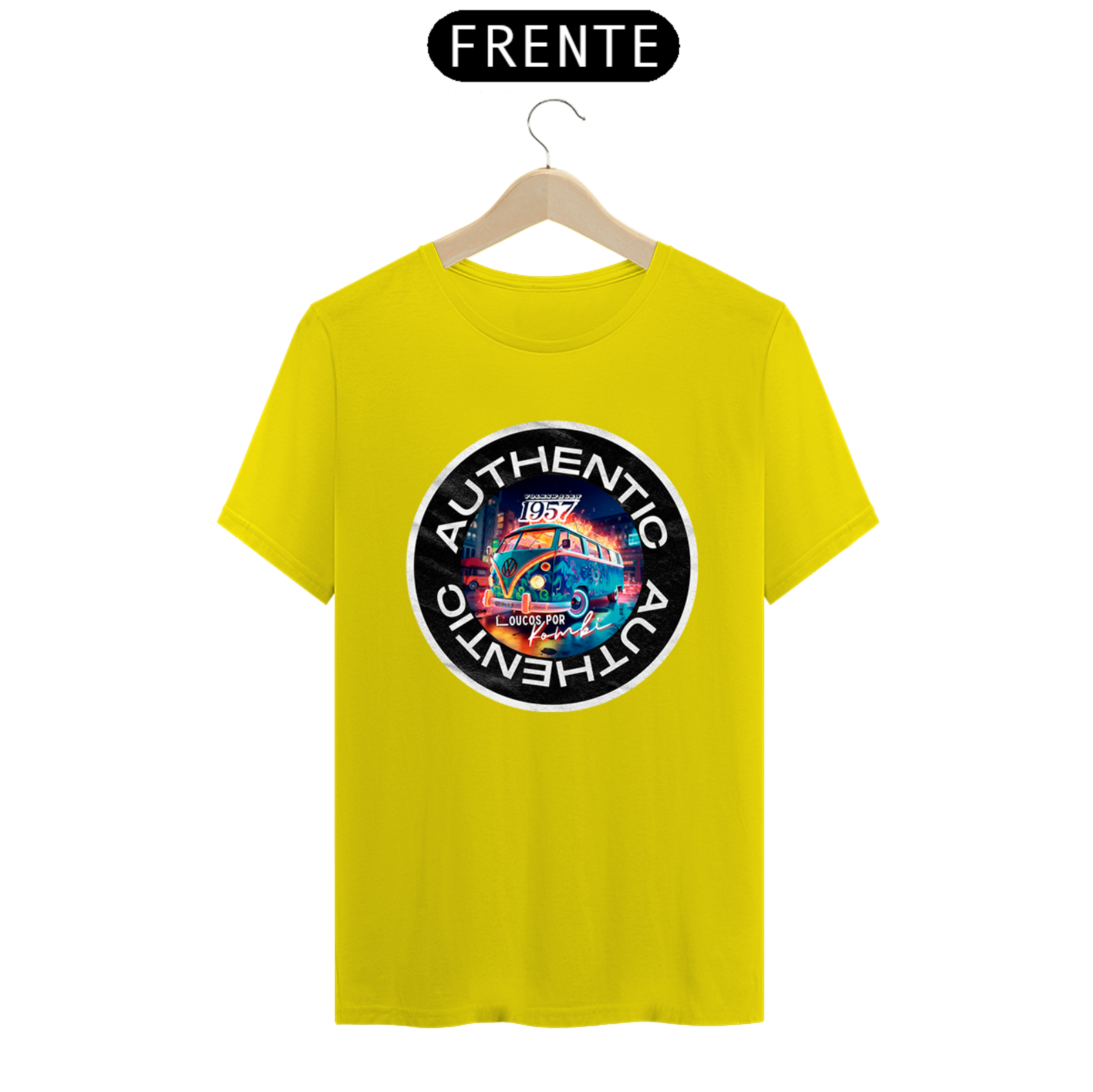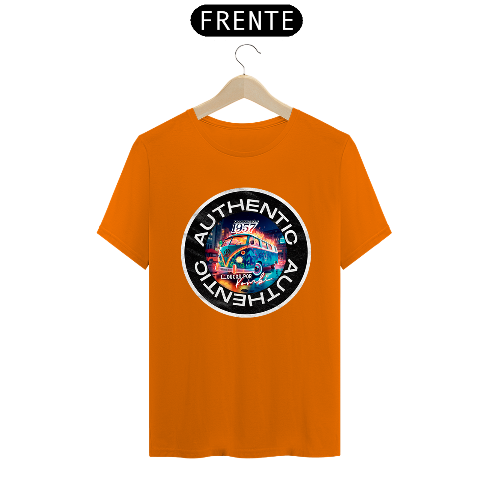 Seja a estrela do evento com a nossa Camiseta On Demand.  Aqui usamos um exemplo desse ícone automotivo a Kombi, mas você pode usar foto, frase e personalizar do seu jeito.