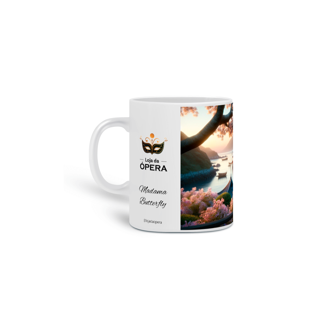 Mergulhe no encanto da clássica "Madama Butterfly" de Puccini com esta peça exclusiva, perfeita para adicionar um toque de elegância e cultura ao seu cotidiano. Imagine-se saboreando sua bebida favorita enquanto contempla a serena paisagem de um jardim japonês do início do século XX, sob a luz suave do pôr do sol. A heroína Cio-Cio San, vestida em seu quimono tradicional sob as cerejeiras em flor, traz uma expressão de esperança e melancolia que captura a essência emocional da ópera.