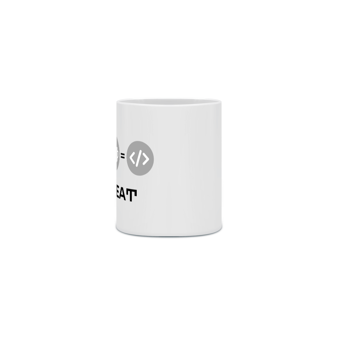 Eleve sua rotina com estilo! Nossa Caneca Branca "Repeat" é o item indispensável para quem vive o ciclo essencial: trabalhar, tomar café e codar! Com uma estampa minimalista e moderna, composta por ícones que representam perfeitamente o dia a dia de programadores, desenvolvedores e criativos, essa caneca transforma qualquer pausa em um momento de inspiração.