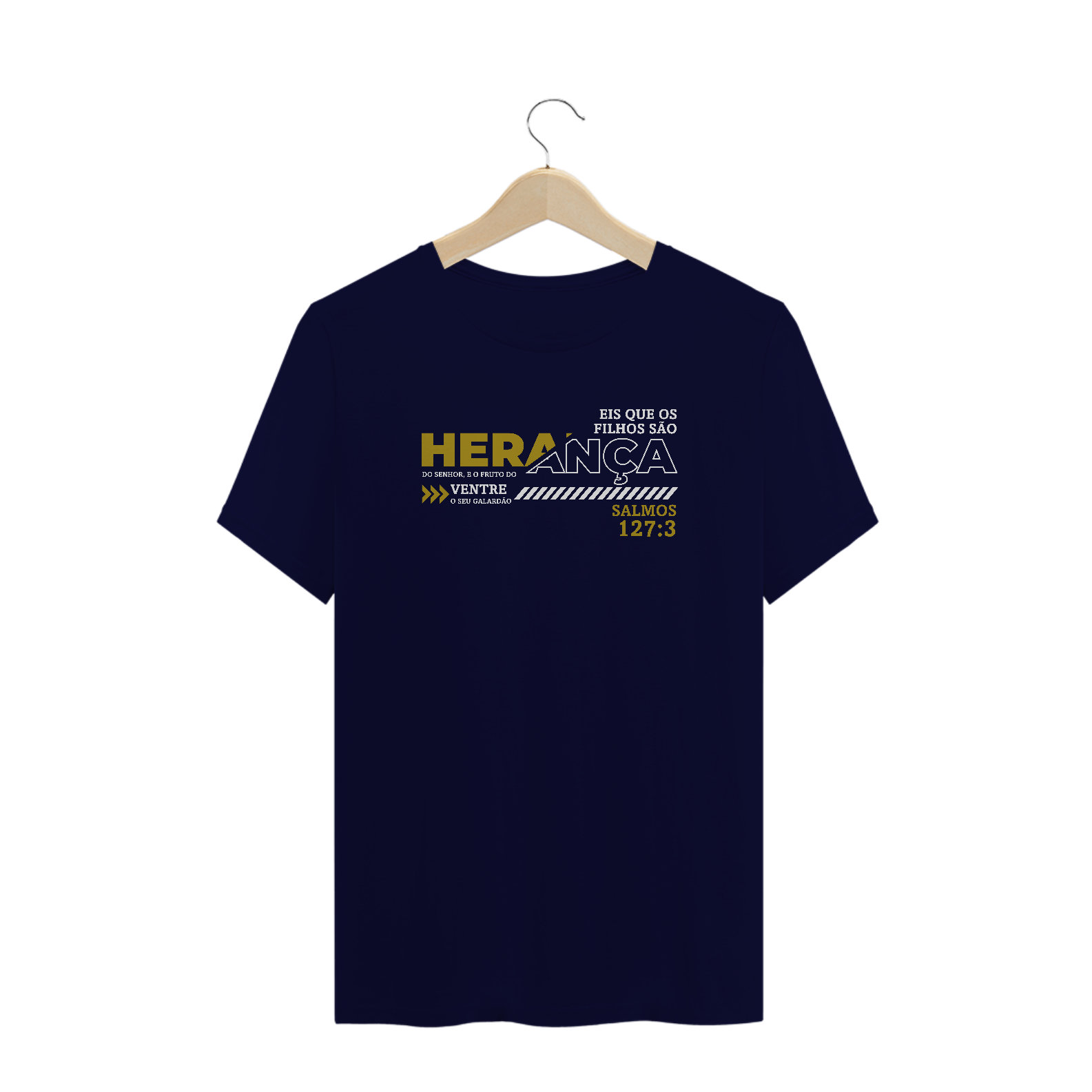 • Estampa Inspiradora: O versículo "Herança do Senhor", de Salmos 127:3, é estampado com detalhes visuais marcantes, transmitindo uma mensagem poderosa de fé.
