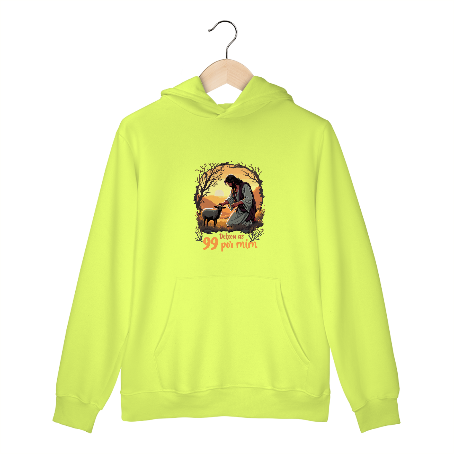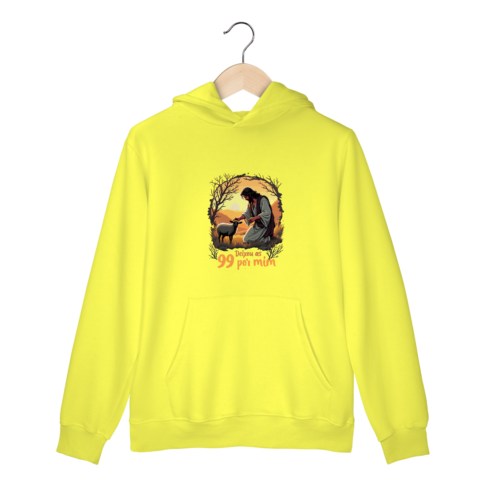 Garanta já o seu Moletom Canguru "Deixou as 99 por Mim" e leve consigo uma mensagem de fé e amor. Este é o acessório perfeito para quem deseja unir conforto, estilo e devoção. Não perca essa oportunidade!