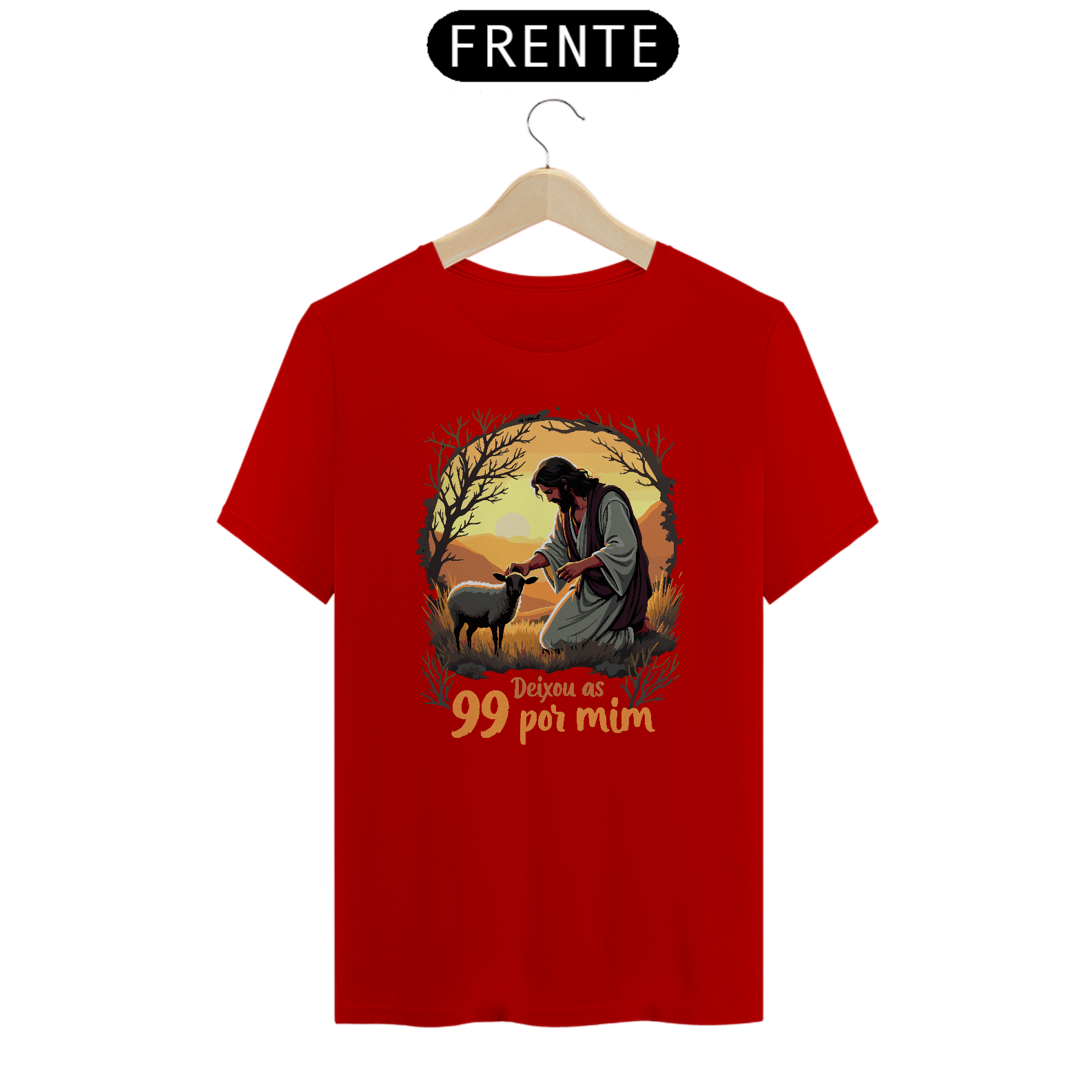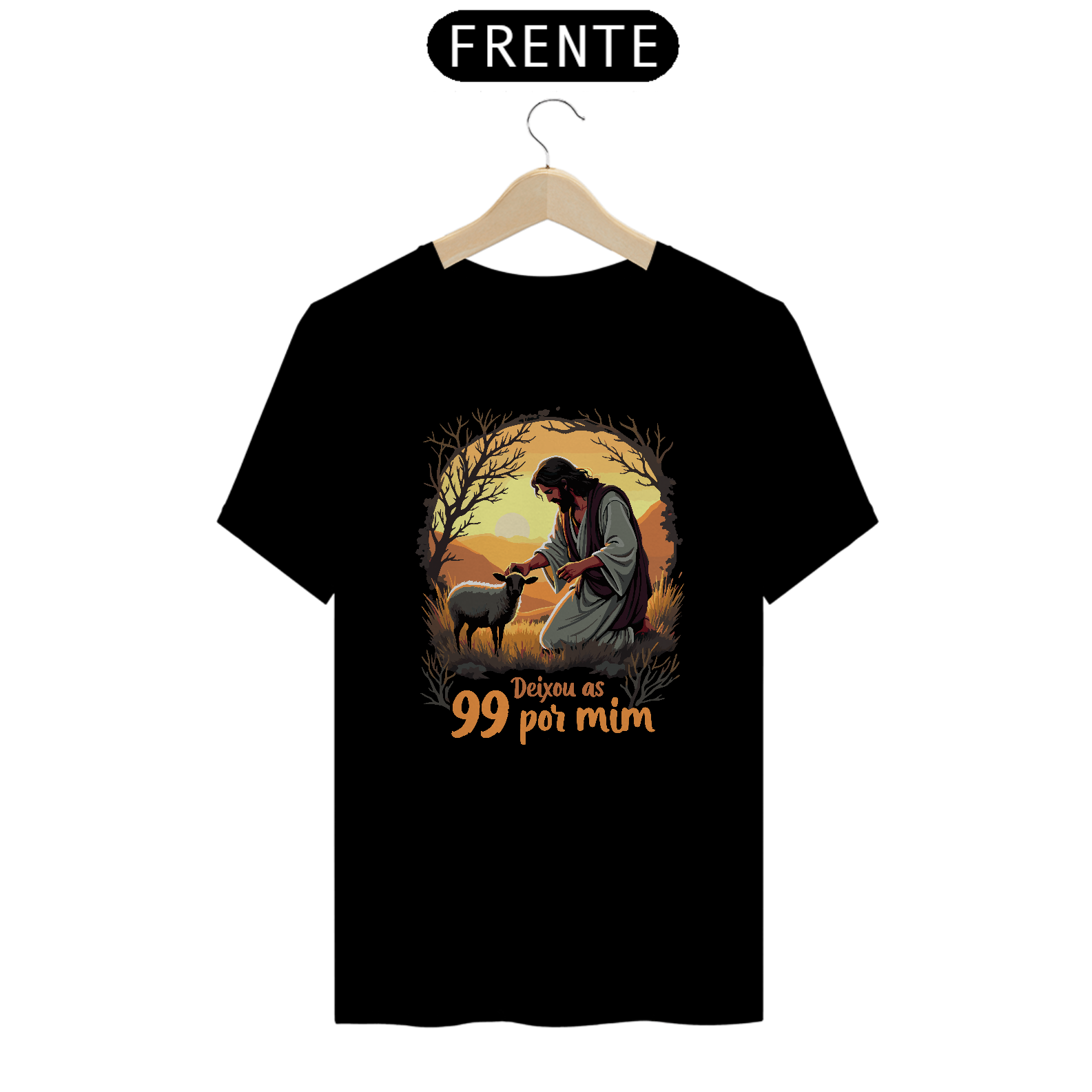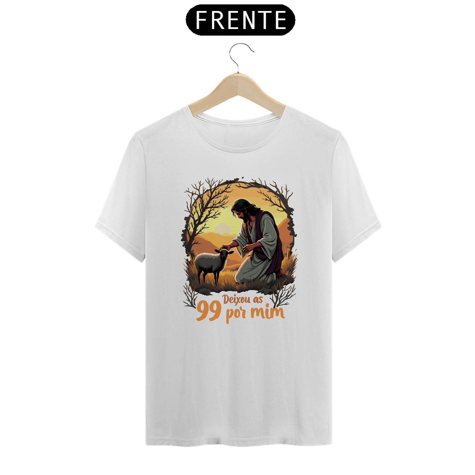 A Camiseta Unisex Prime "Deixou as 99 por Mim" é uma peça que une estilo e uma mensagem profunda de fé. Inspirada na parábola da ovelha perdida, essa estampa retrata Jesus em um momento de cuidado e amor, lembrando-nos de que Ele deixa as 99 para buscar aquela que está perdida. Uma escolha perfeita para quem deseja expressar sua fé com uma peça confortável e de alta qualidade.