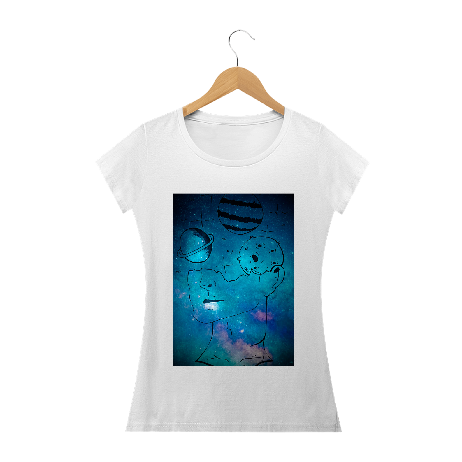 Mergulhe nas profundezas do universo com nossa deslumbrante Camiseta Cósmica, projetada para os amantes da galáxia e entusiastas do espaço. Esta peça única transformará seu estilo em uma jornada intergaláctica, combinando moda contemporânea com a majestade do cosmos.