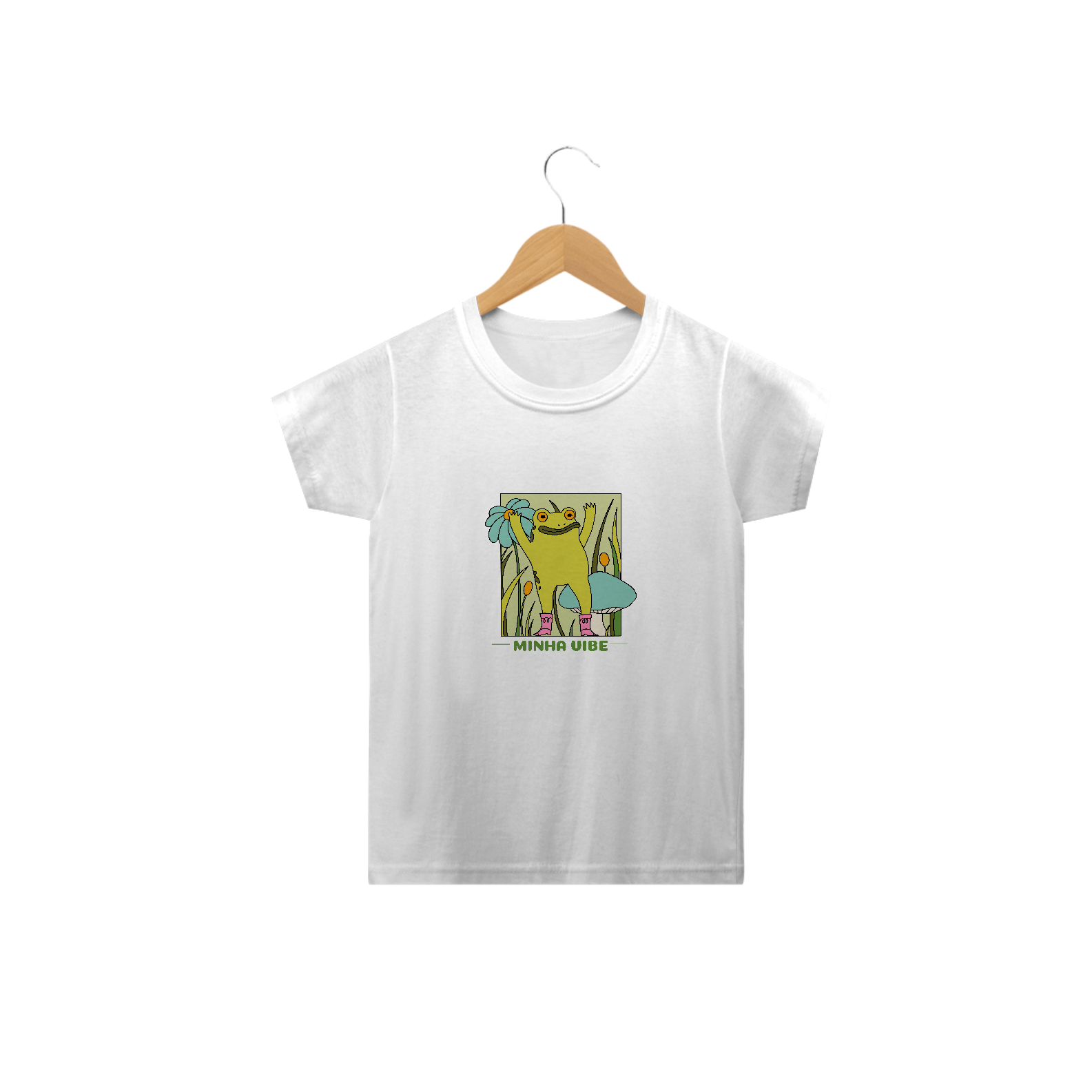 A Camiseta Minha Vibe é feita pra meninas de 2 a 14 anos que sabem muito bem qual é a delas! Com um sapinho super fofo estampado, essa peça transborda personalidade e leveza — perfeita pra pequenas que curtem looks divertidos e cheios de atitude.