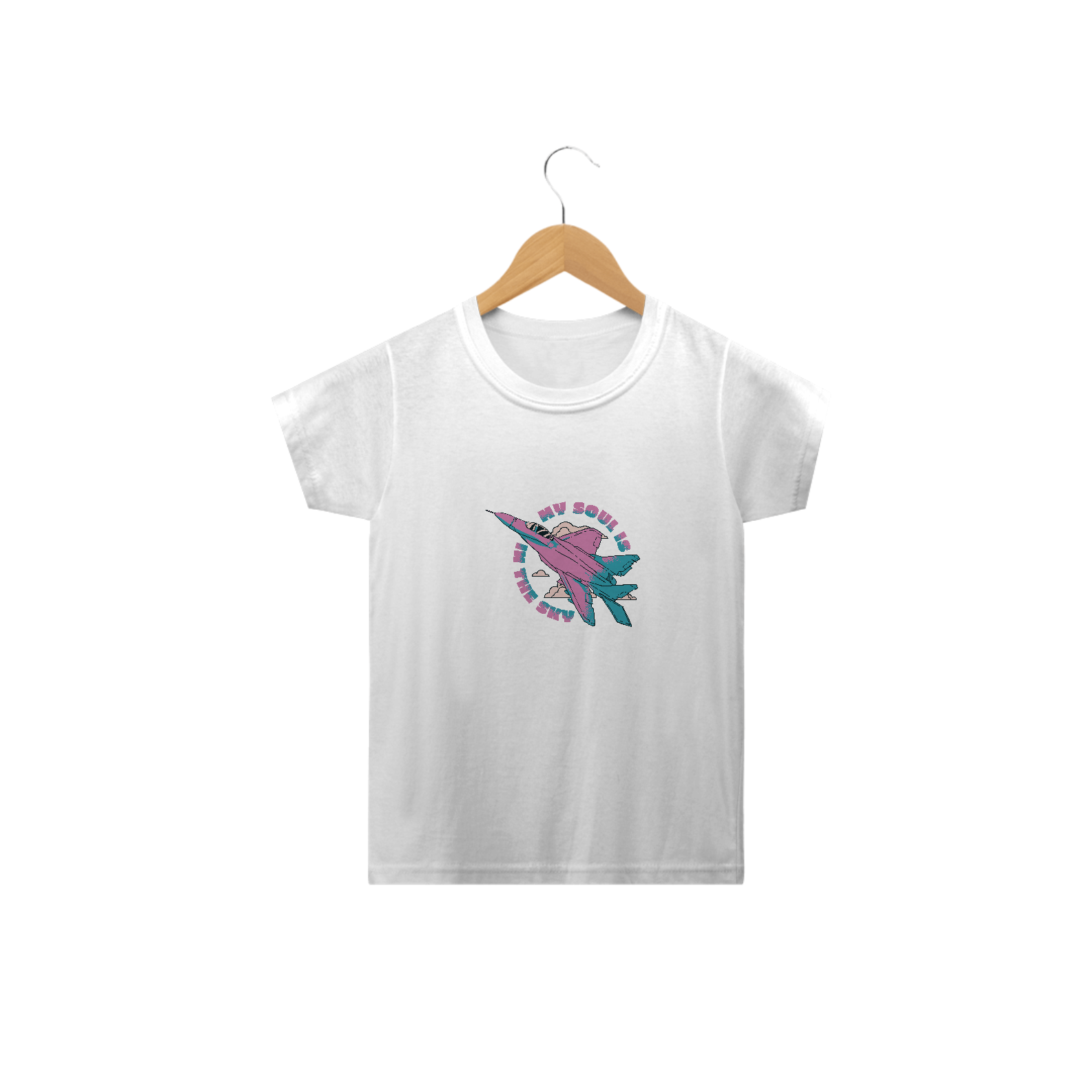 • Camiseta infantil feminina com a frase “My Soul Is In The Sky” – uma mensagem leve, linda e inspiradora pra quem tem o coração nas alturas