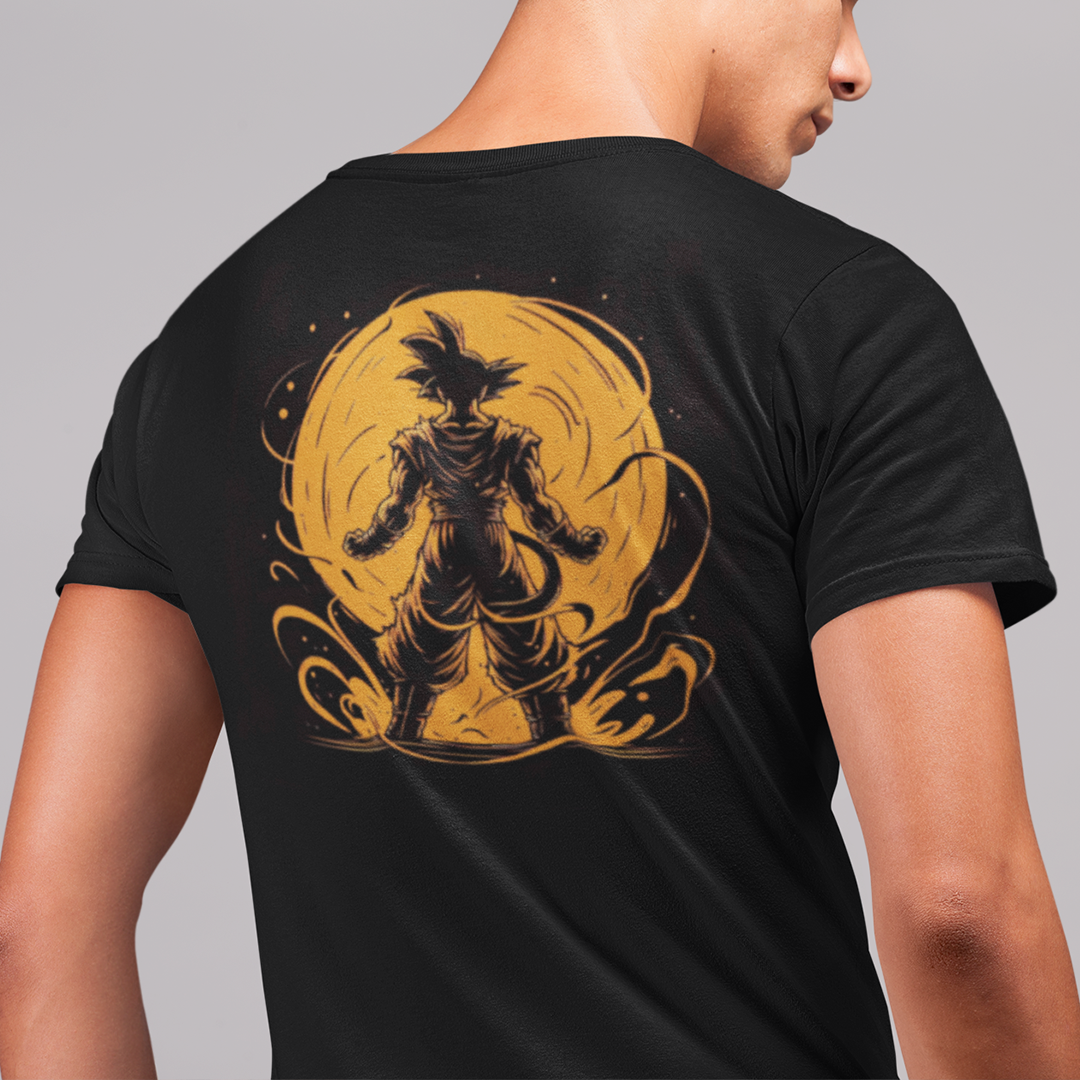 Esta camiseta premium, com design frente e verso, é uma declaração sutil para quem sabe que grandes batalhas são vencidas com paciência... e alguns gritos épicos. A ilustração nas costas captura aquele momento crucial antes da transformação — porque o verdadeiro estilo é estar sempre pronto, mas sem pressa.