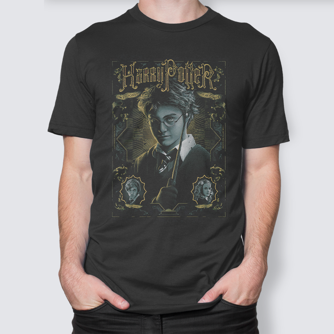 Prepare-se para vestir o feitiço que nunca quebra: estilo eterno. ✨⚡ Esta camiseta celebra o melhor de 'O Prisioneiro de Azkaban', com detalhes dignos de uma obra de arte. Perfeita para quem sabe que ser fã é mais que assistir, é carregar Hogwarts no peito – literalmente.