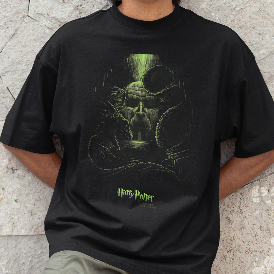 Se você está pronto para enfrentar um basilisco (ou só a fila do café), essa oversize é sua nova companheira. Confortável como um feitiço de 'Alohomora' e sombria o suficiente para impressionar até os Comensais da Morte. Liberte a magia... mas sem abrir câmaras secretas no processo.