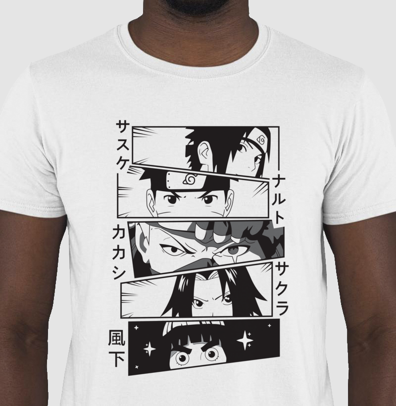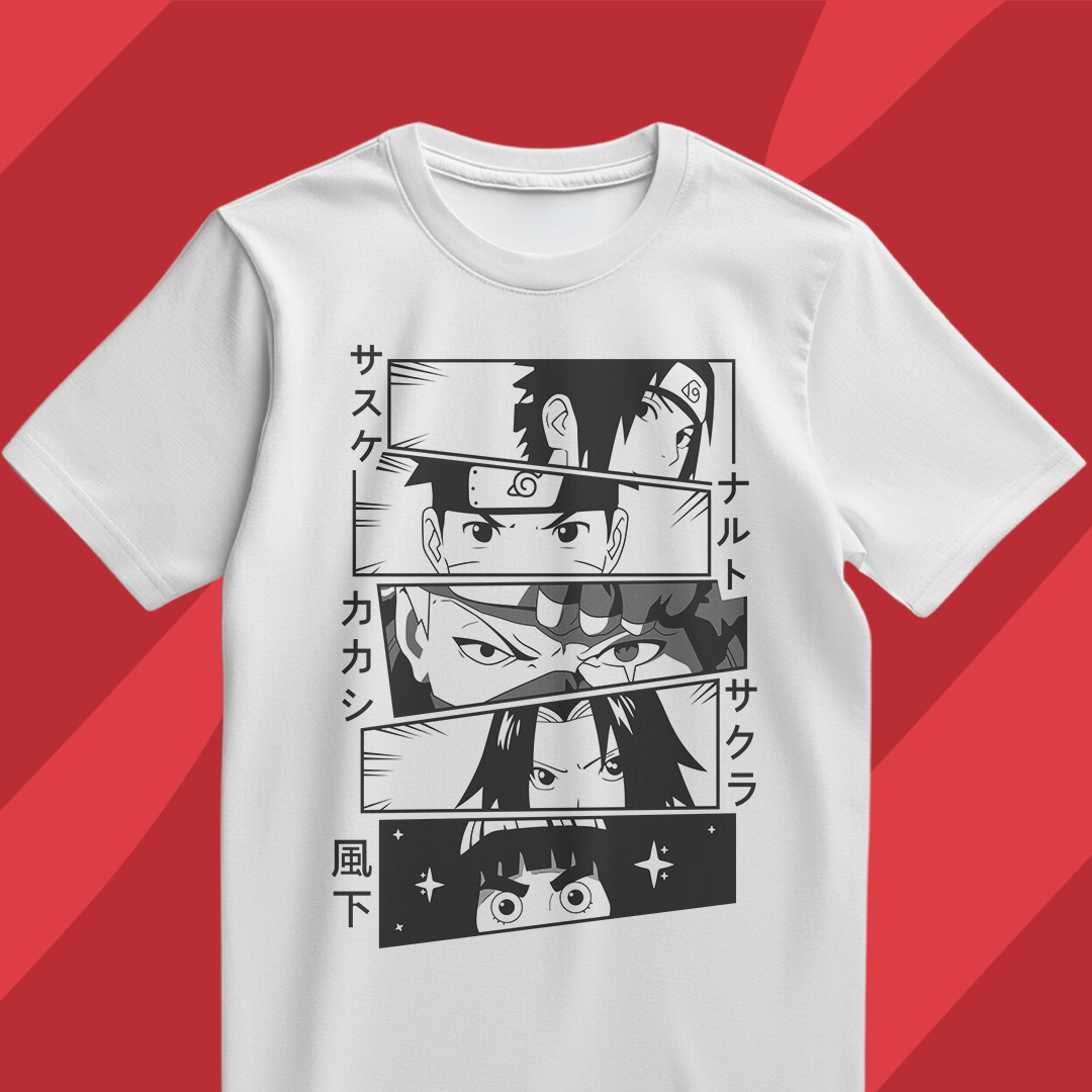 Se você é fã de ninjas que quebram todas as regras, esta camiseta é a escolha certa! Com um design inspirado nos momentos mais icônicos da equipe original, essa estampa traz em detalhes o olhar determinado de Sasuke, Naruto, Kakashi, Sakura e Hinata, como se estivessem prontos para a próxima missão. Feita de tecido superconfortável e com alta qualidade de impressão, ela é ideal para quem quer carregar o espírito ninja no peito – seja na academia, no rolê ou no sofá maratonando aquele anime favorito!
