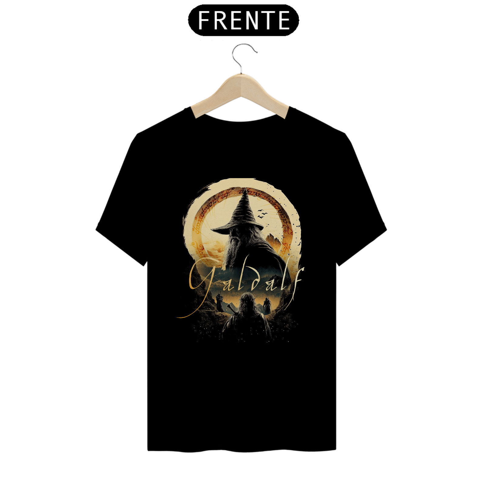 Leve a sabedoria e o poder do mago mais icônico da Terra Média para o seu guarda-roupa! Nossa camiseta premium de Gandalf, da coleção exclusiva Senhor dos Anéis, traz uma arte impressionante e detalhada, com a escrita élfica ao fundo e a presença imponente do mago cinzento. Feita com tecido de alta qualidade, ela oferece conforto e durabilidade para qualquer jornada, seja em maratonas de filmes ou no seu dia a dia.