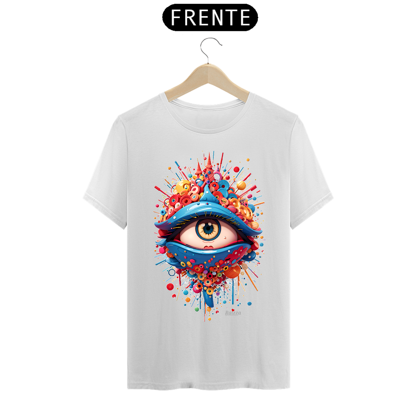Camiseta Terceiro Olho possui uma estampa produzida com impressão digital (DTG) e o processo é realizado com o que há de mais moderno no mercado, em impressora específica para malharia, imprimindo a arte com qualidade de definição excepcional e textura mínima sob a malha.