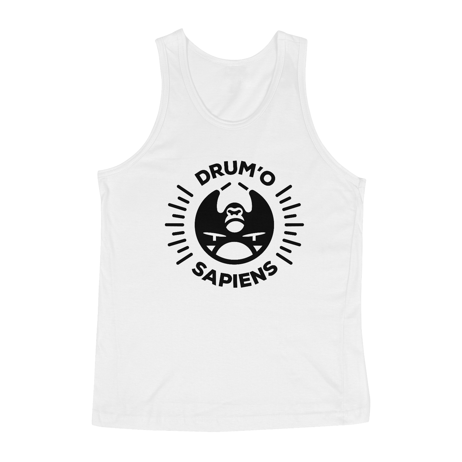 Regata branca ou cinza com logo Drum'o Sapiens preta.