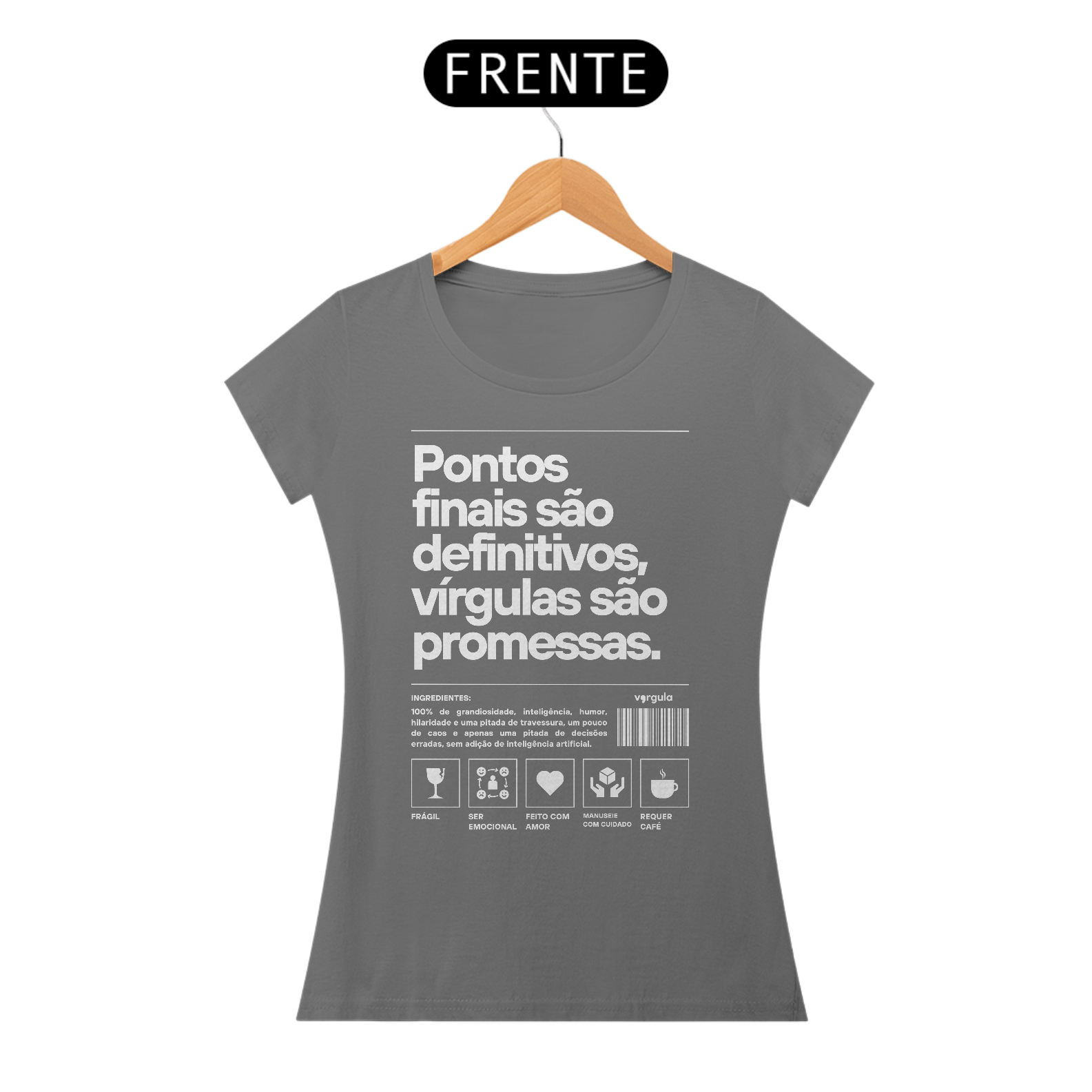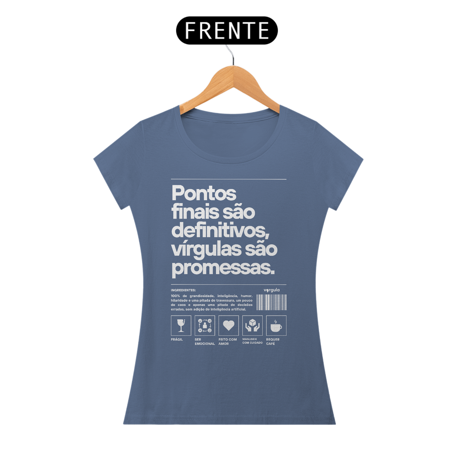 Cores do produto: Como cada tela de computador ou celular tem seu próprio jeito de mostrar cores, então a cor da sua camiseta e da estampa pode ser um pouquinho diferente do que você viu online.