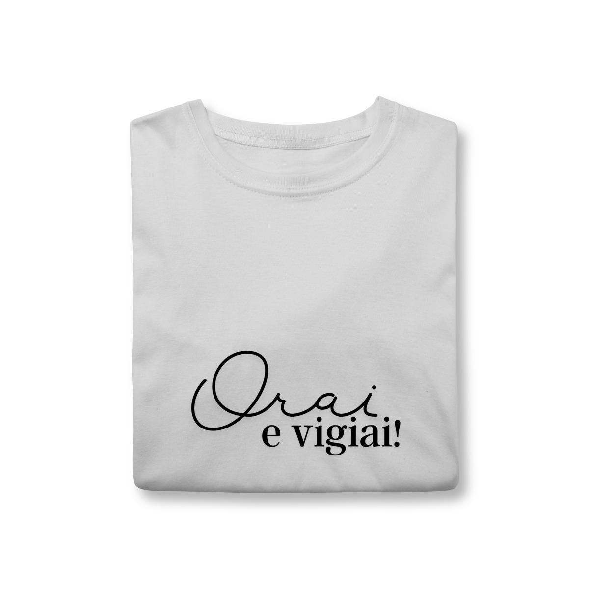 Com design simples e significativo, a frase “Orai e Vigiai” expressa um lembrete diário de equilíbrio, fé e responsabilidade espiritual, valores essenciais à vivência do Evangelho no cotidiano.