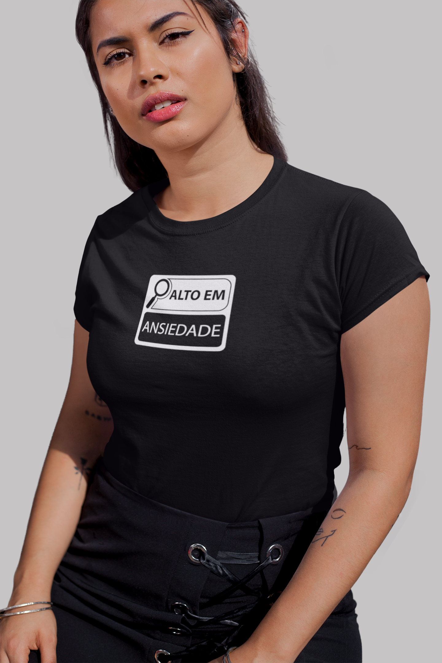 Camiseta feminina quality com a estampa "alto em ansiedade".