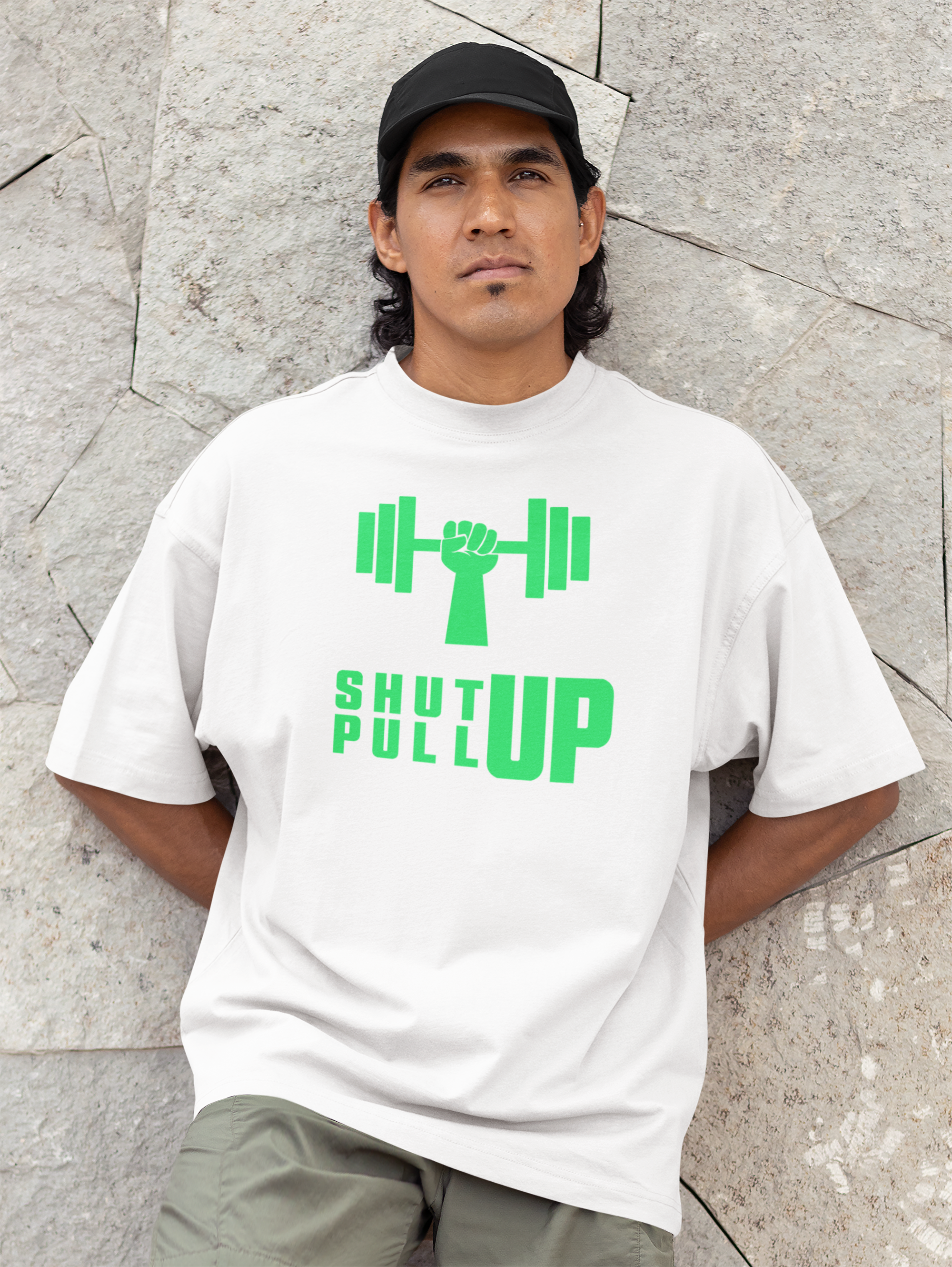 Camiseta oversized unissex shut up pull up.
