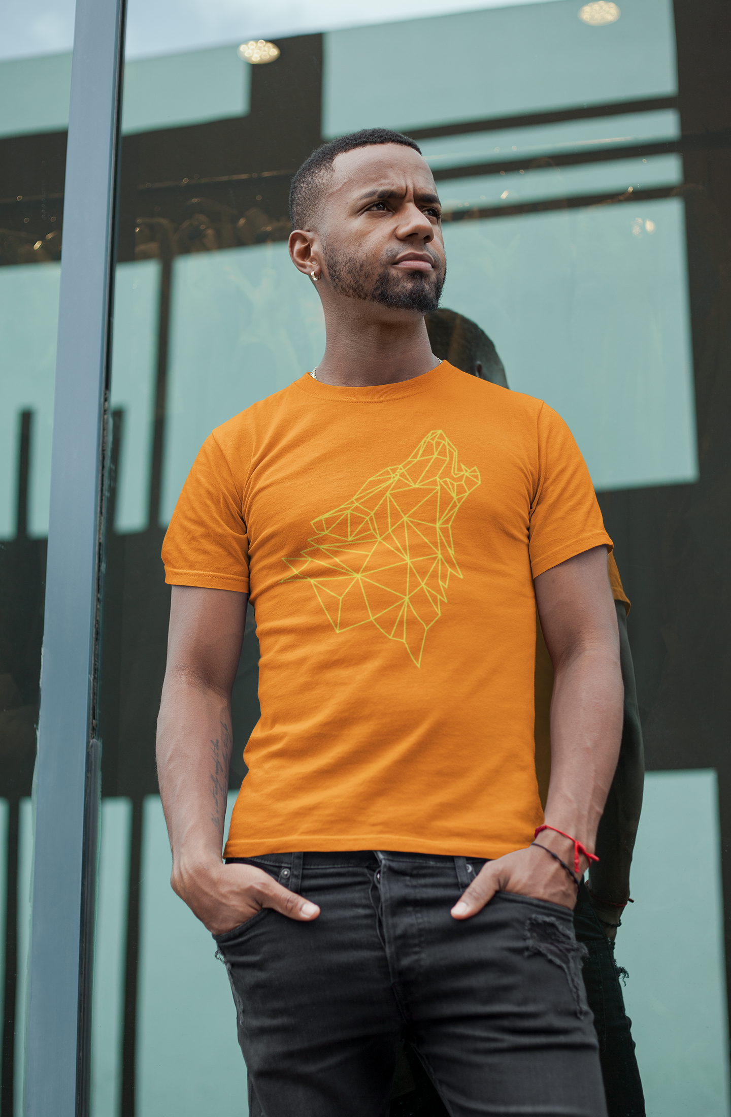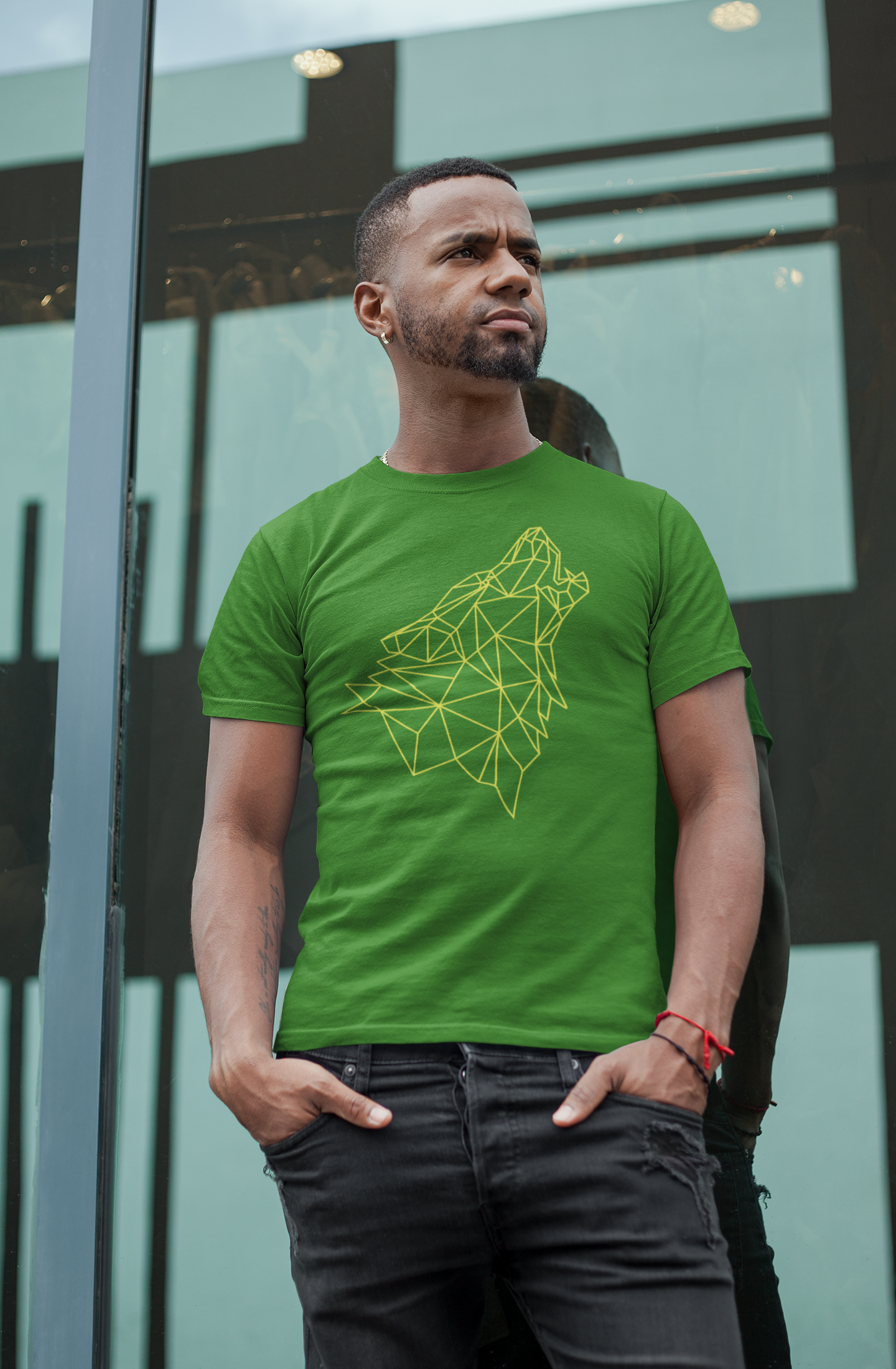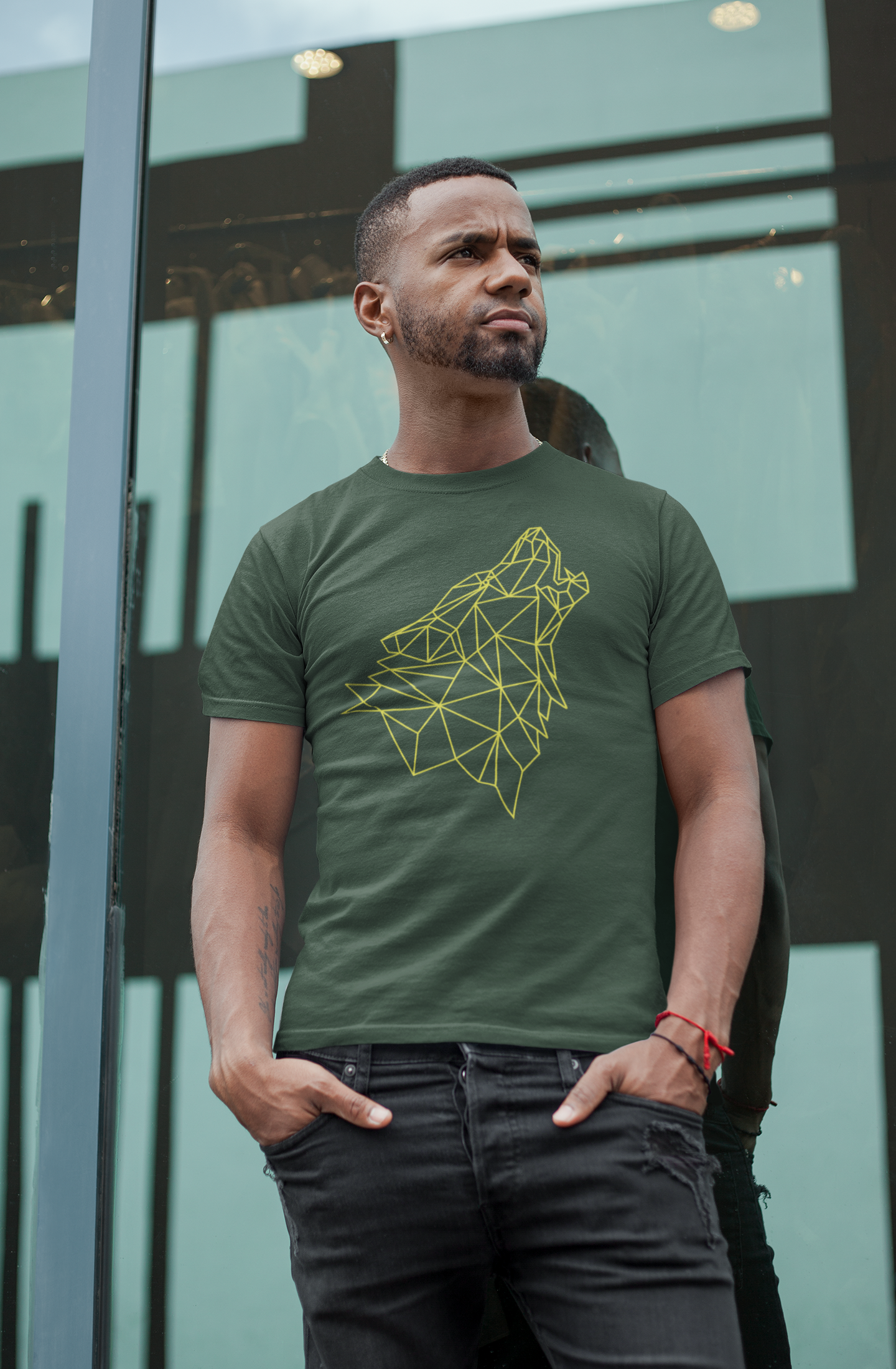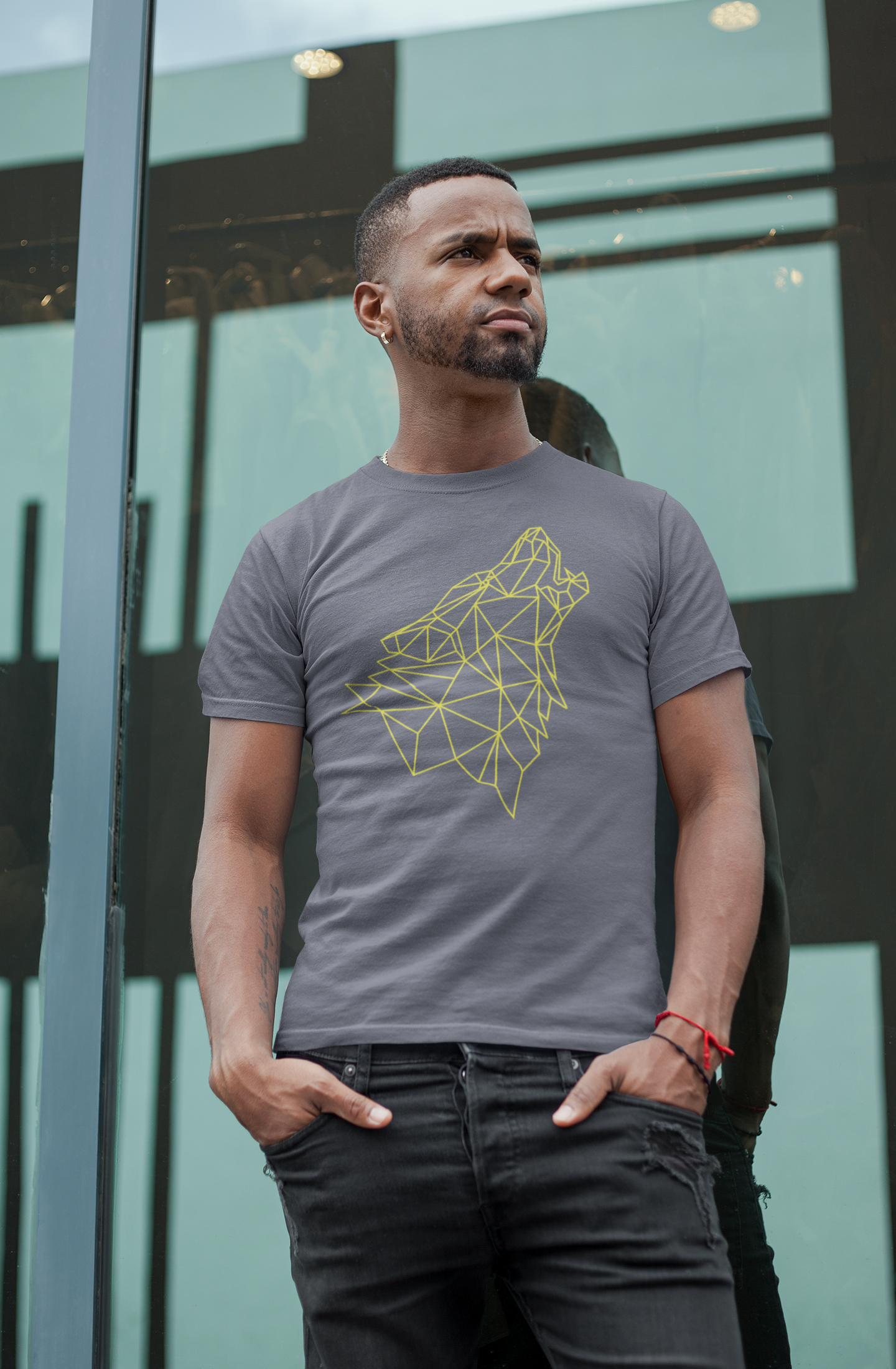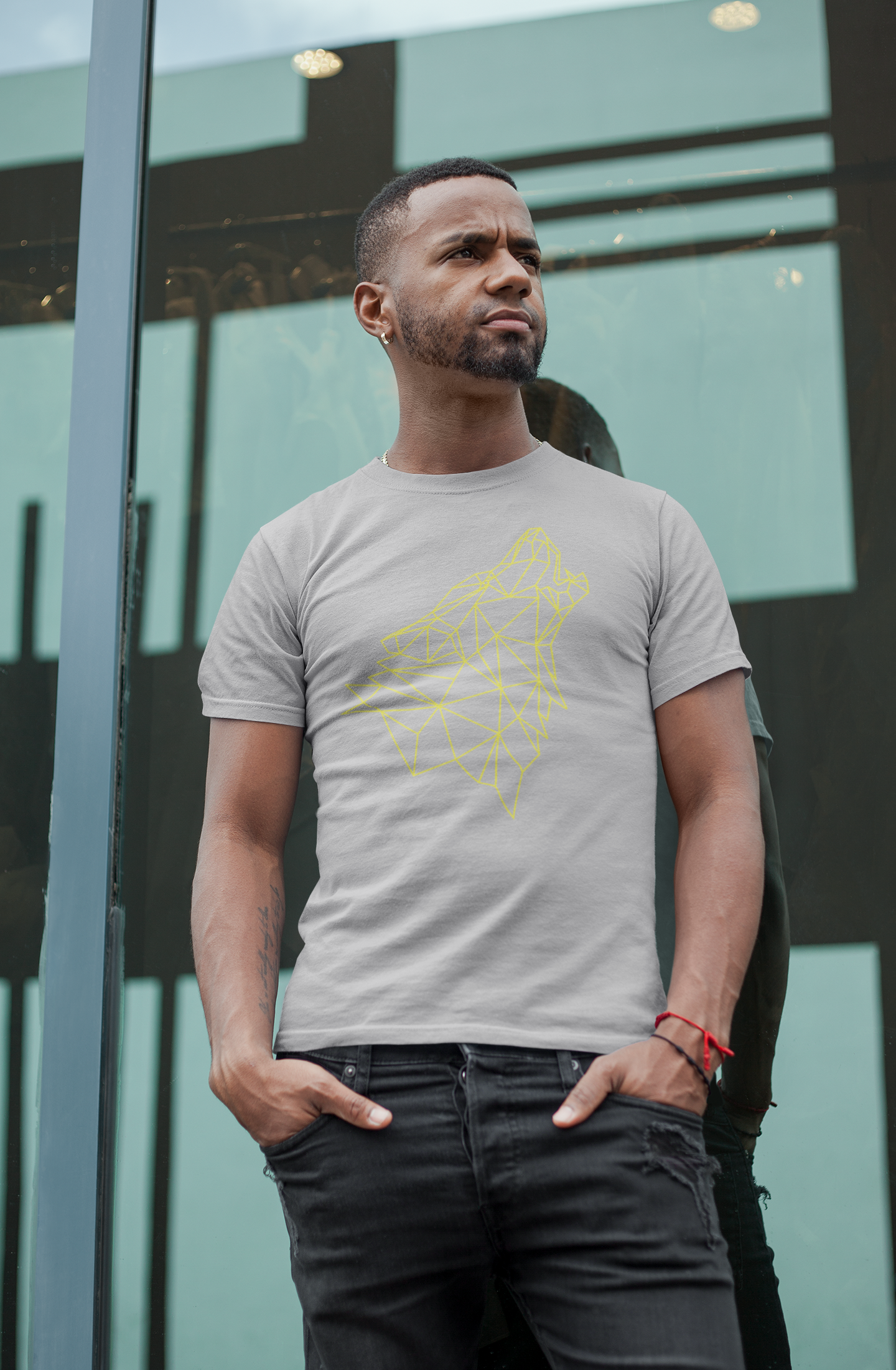 T-shirt básica silhueta de lobo na cor amarela.