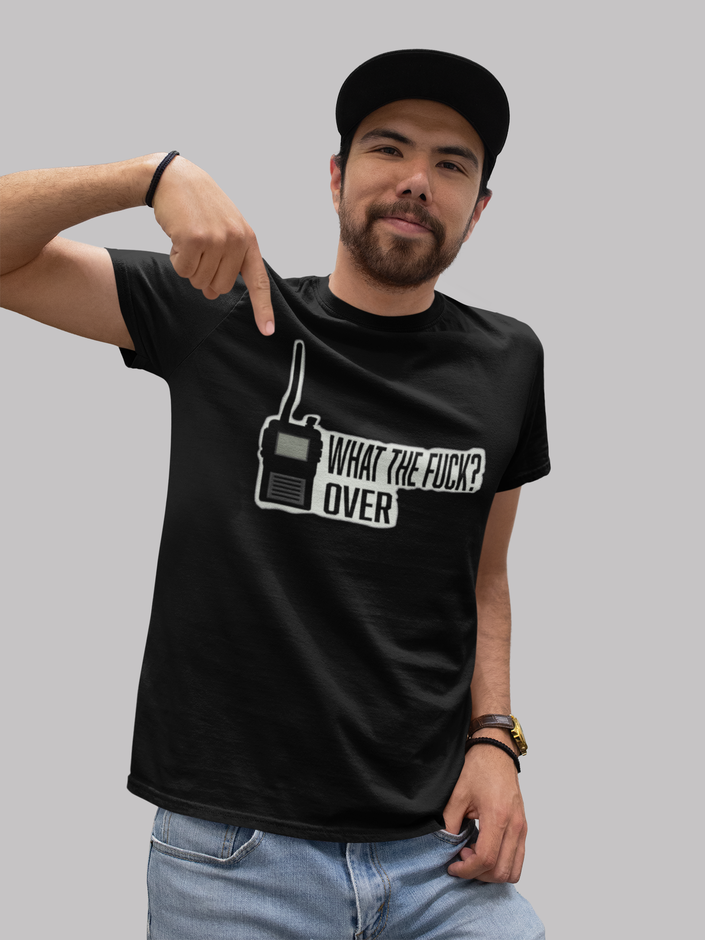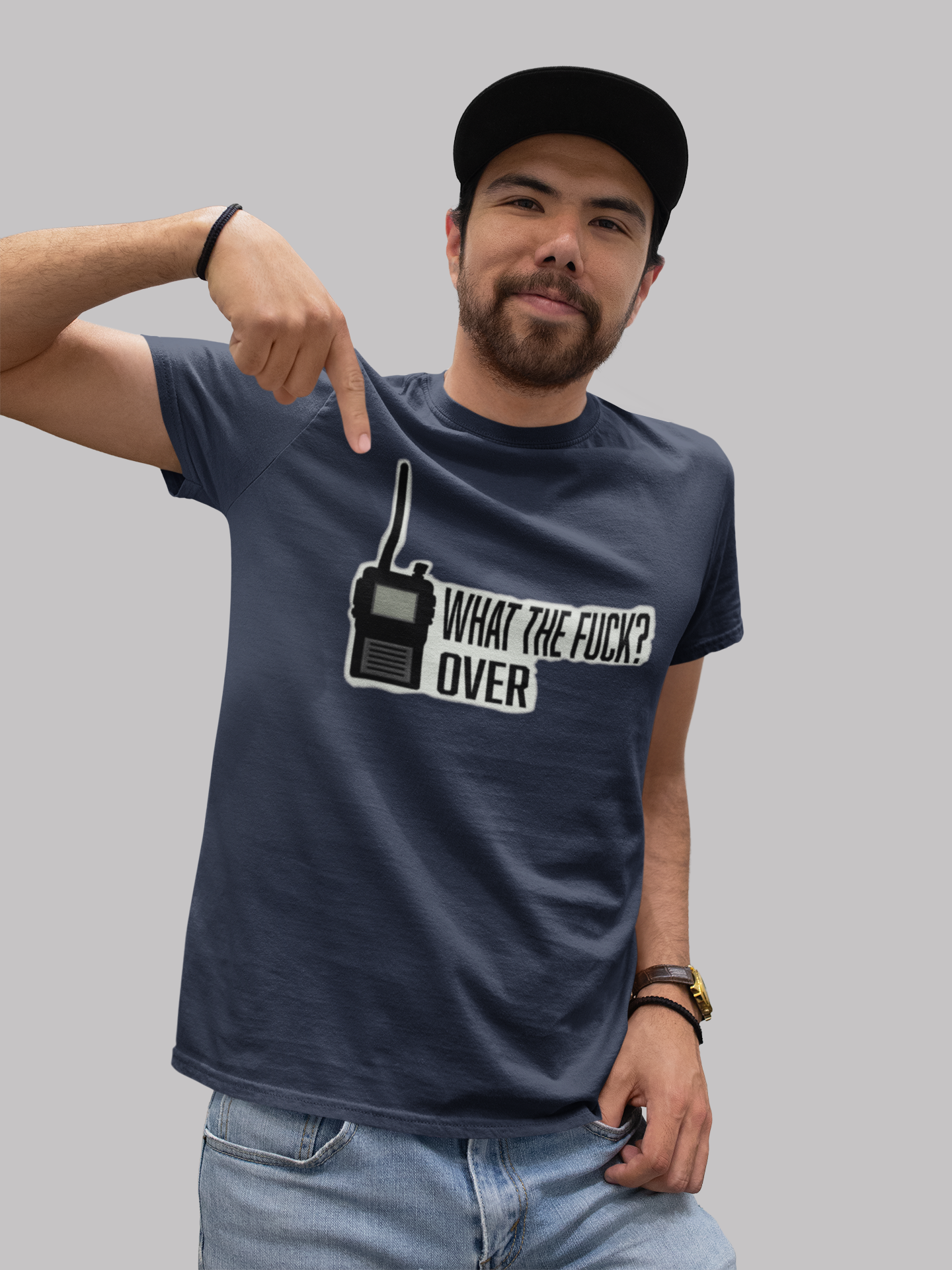Camiseta Quality masculina com a escrita "What the fuck, Over".