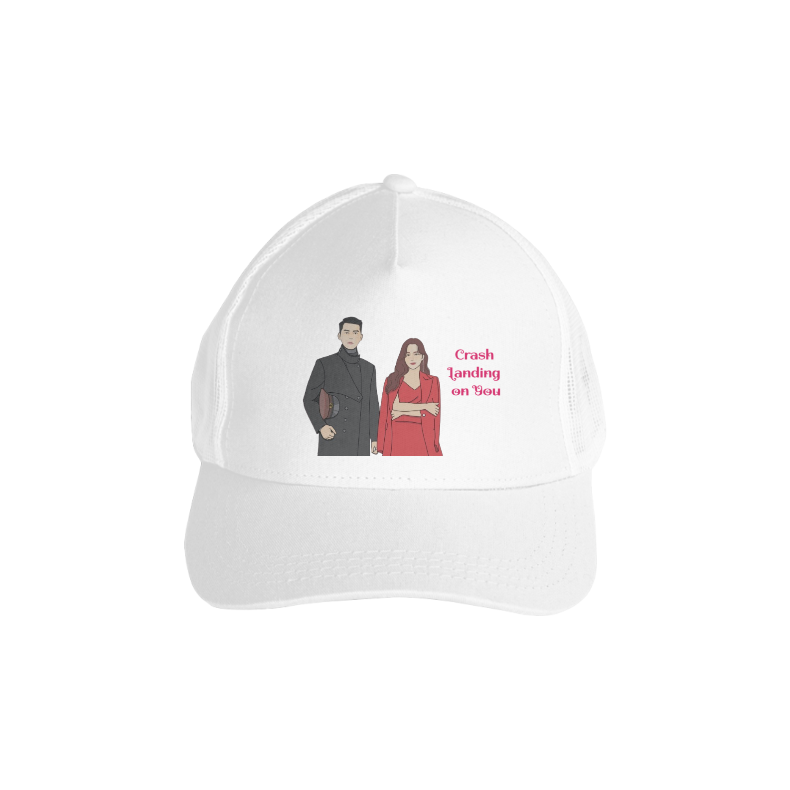Mostre sua paixão pelo romance entre Yoon Se-ri e Ri Jeong-hyeok com estilo e atitude! Nosso boné de Pousando no Amor é o acessório perfeito para quem quer se destacar e carregar consigo uma das histórias de amor mais icônicas dos doramas. Personalize com sua frase ou cena favorita e leve o destino nas mãos – ou na cabeça!