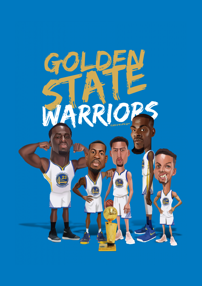 Camisa estampada com os astros do Golden State Warriors da NBA: Draymon Green, Andre iguodala, Klay Thompson, Kevin Durant e Stephen Curry