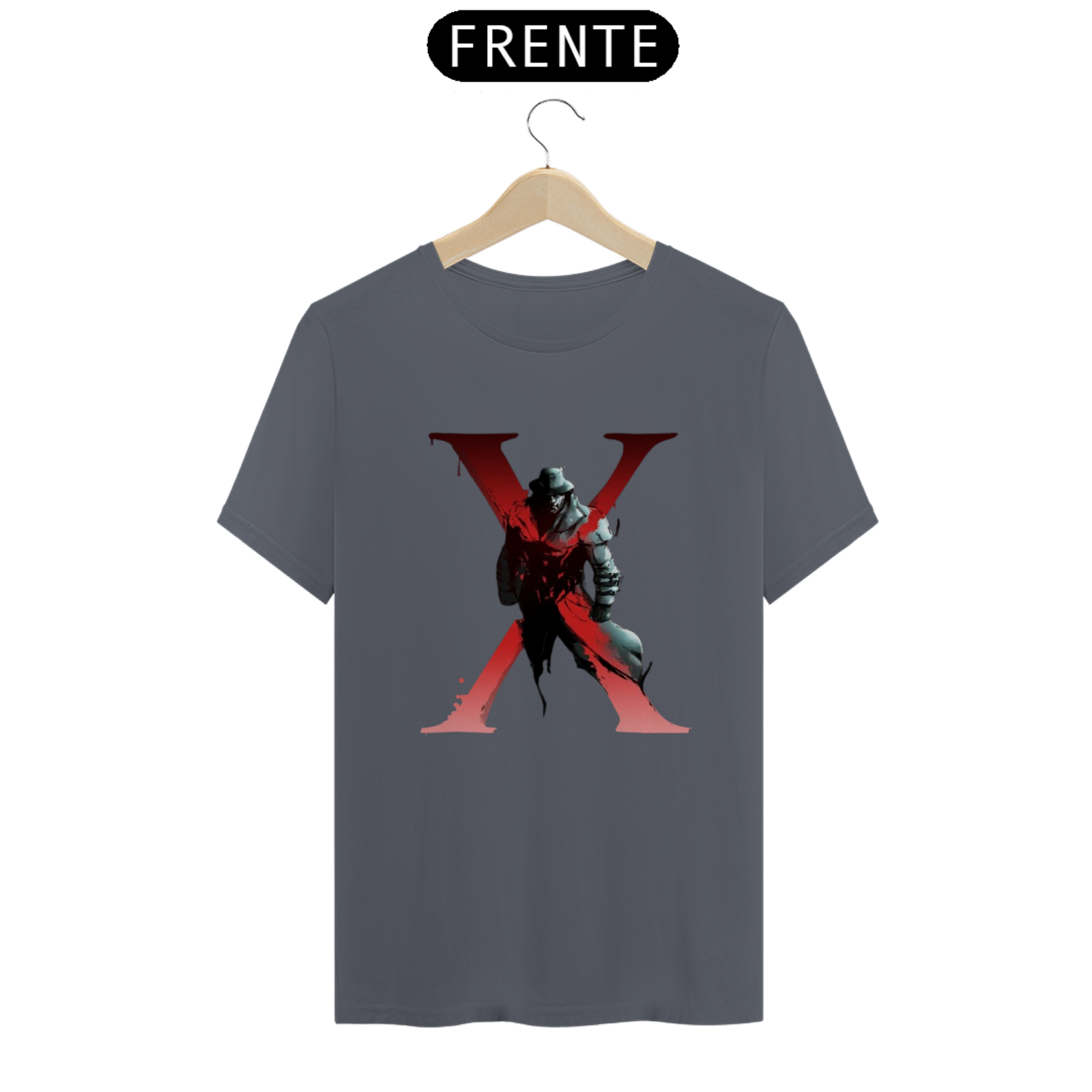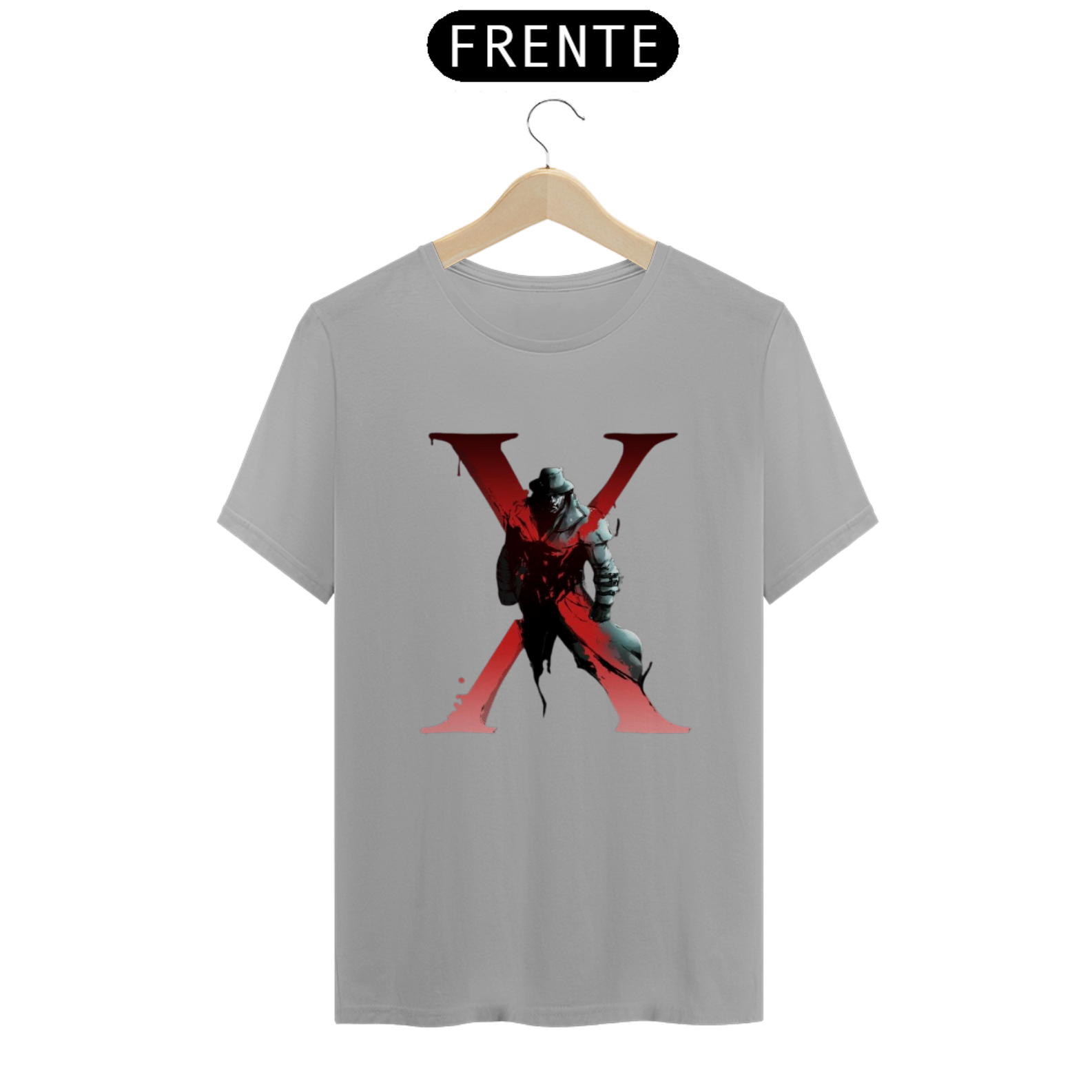 A estampa apresenta o imponente e implacável Mr. X, conhecido por perseguir incansavelmente os jogadores pelos corredores sombrios de Raccoon City. Com um design estilizado e detalhado, esta camiseta é ideal para fãs que apreciam o suspense e a adrenalina de um bom survival horror.