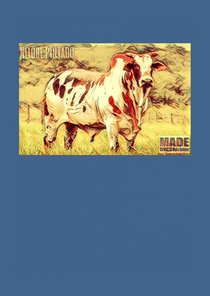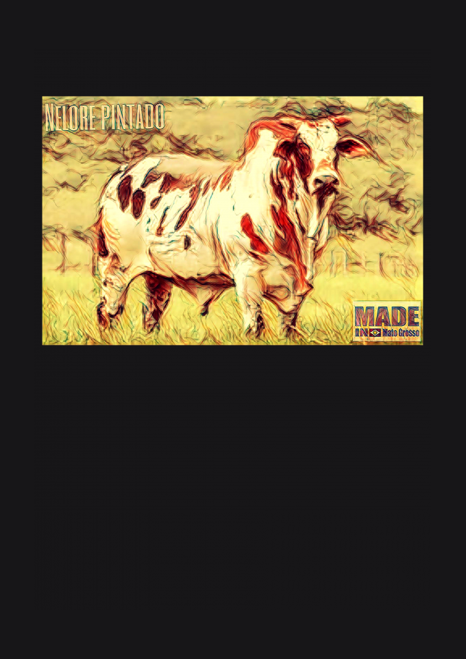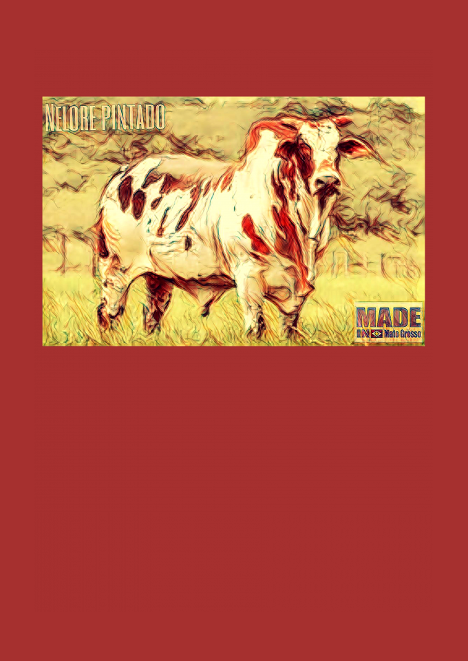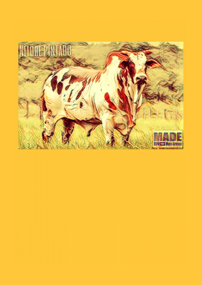 Estampa/caricatura lembra cenário country de Mato Grosso, Estado com o maior rebanho bovino do país.