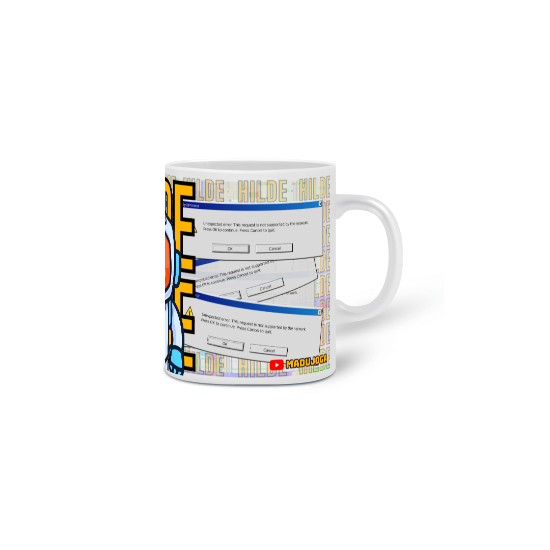 Prepare-se para o caos digital com uma pitada de cafeína! A caneca “Erro Inesperado do Hildebot” é a companhia ideal para quem já foi repreendido no chat, vive cercado de bugs e mesmo assim não perde uma live do MaduJoga. Um tributo ao robô mais passivo-agressivo do universo, cercado por alertas que nem ele entende direito.