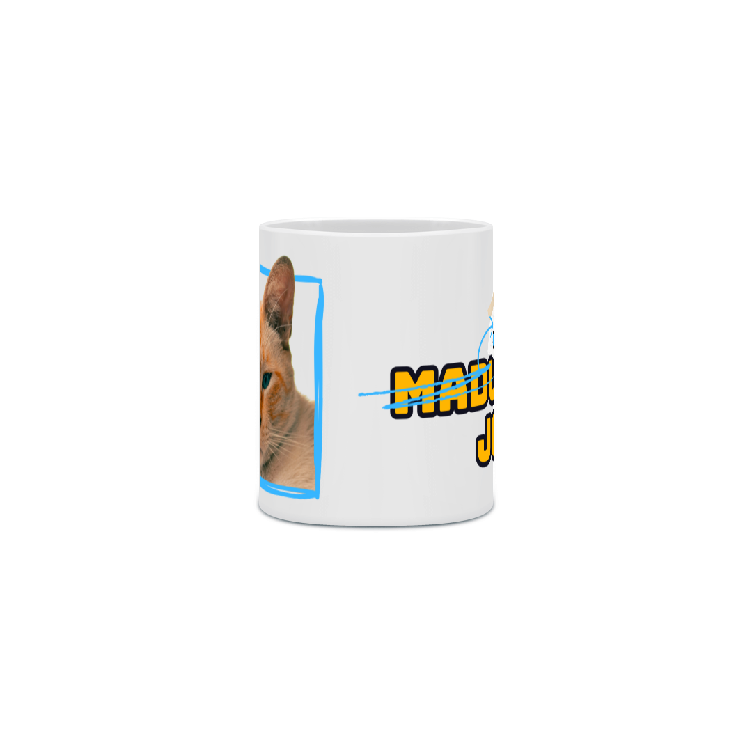Apresentamos a caneca oficial do verdadeiro comandante do canal: João, o gato mais carismático, elegante e soberano do universo MaduJoga. Se você achava que o canal era sobre jogos, tá na hora de aceitar que quem manda mesmo é ele.