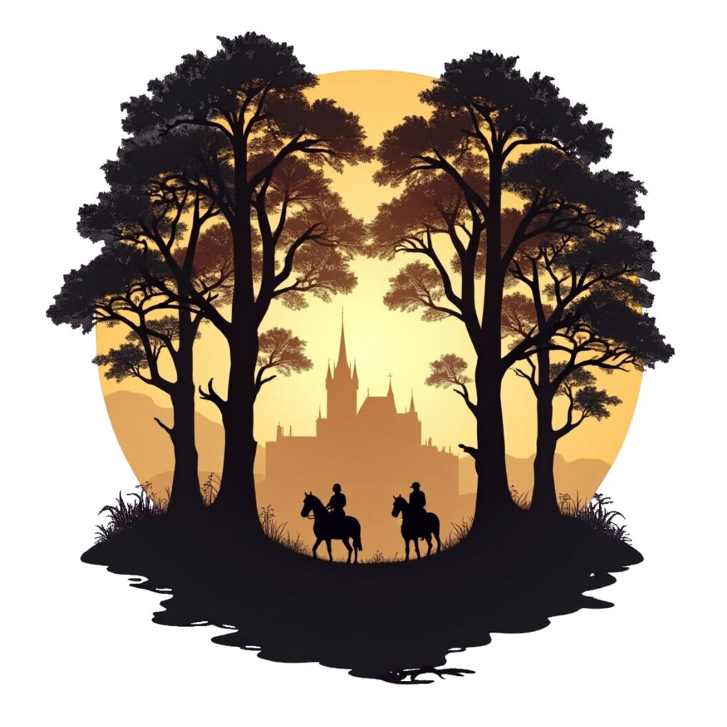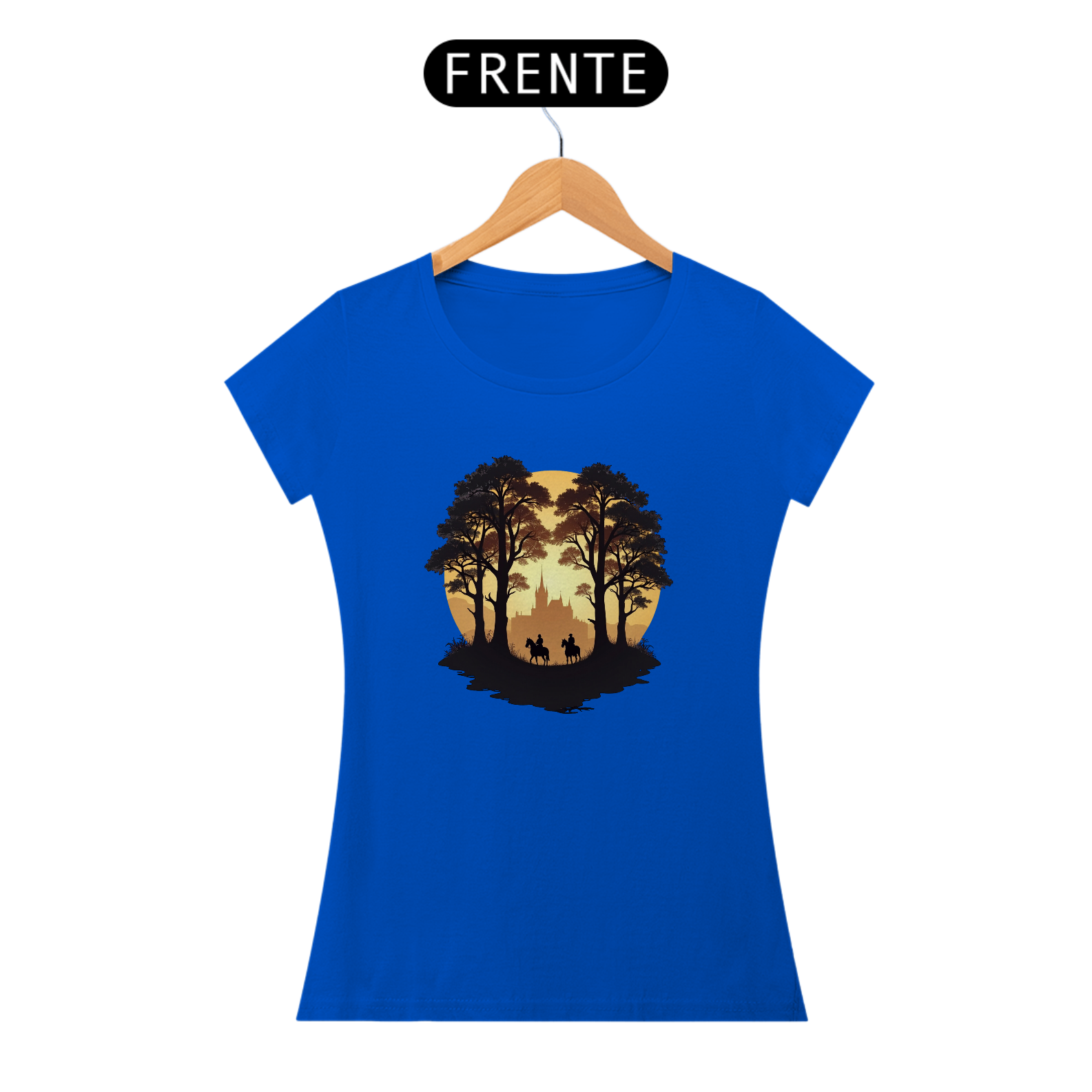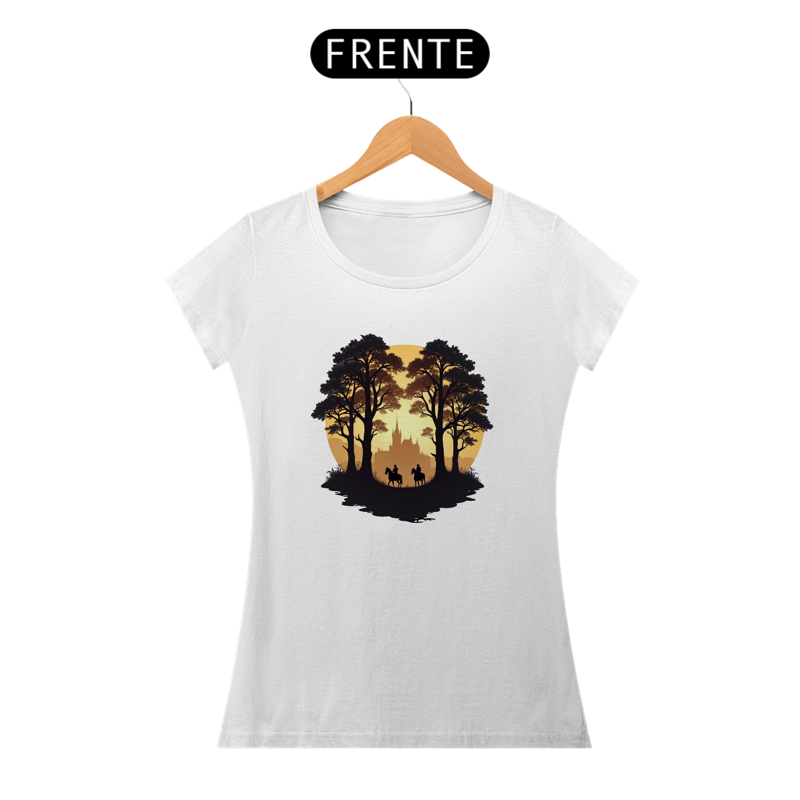 Adentre um mundo de mistério e aventura com a camiseta "Cavaleiros do Crepúsculo". Com um design que retrata dois cavaleiros explorando uma trilha sombria em meio às árvores, com um castelo ao fundo, essa peça evoca o espírito épico dos jogos de estratégia e sobrevivência.