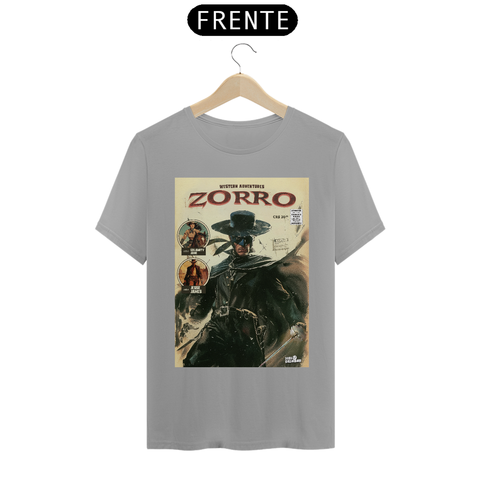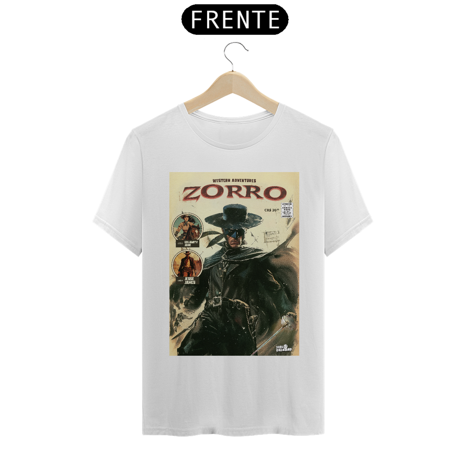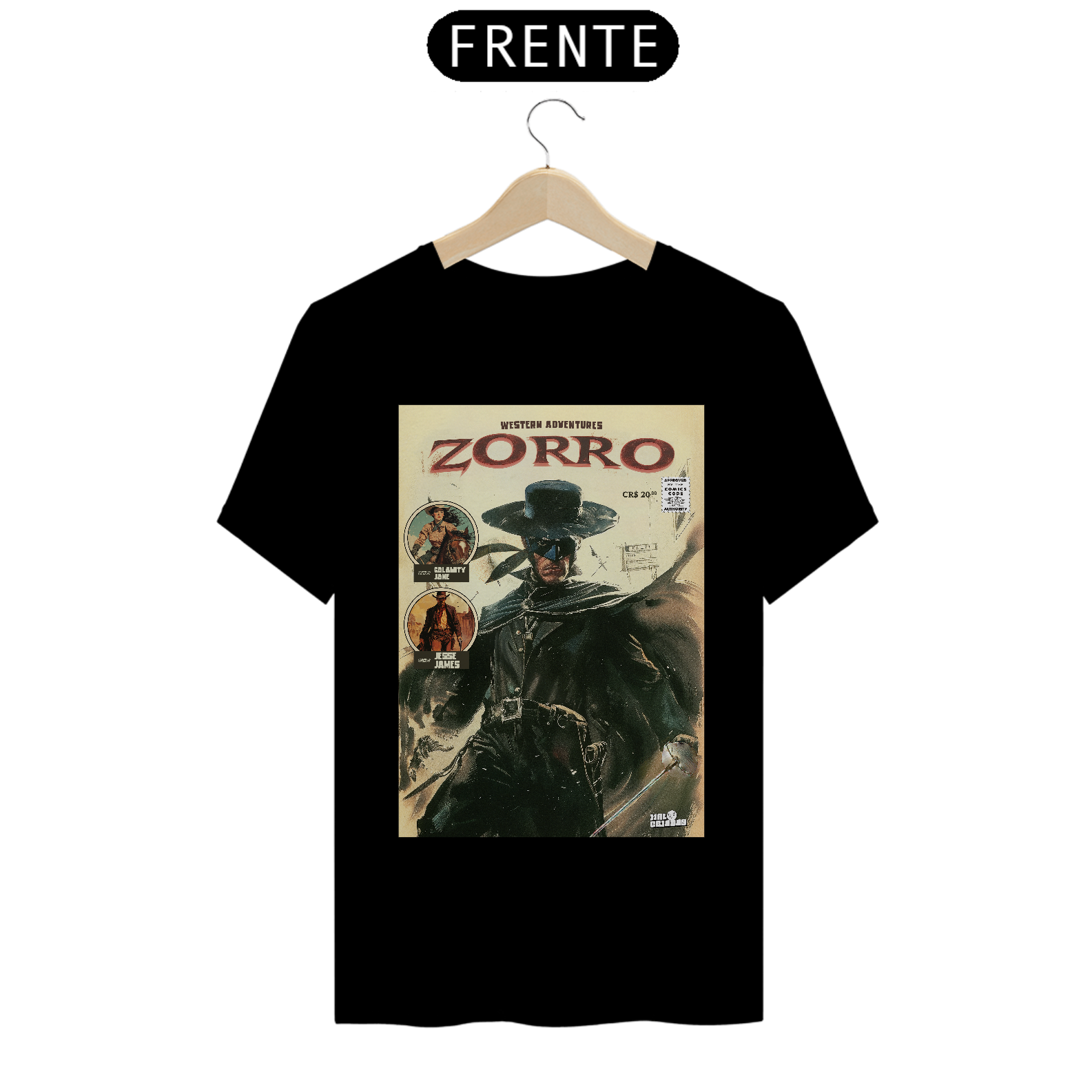 Você está pronto para deixar sua marca? Com nossa estampa exclusiva "A Marca do Zorro", você carrega o estilo de um dos heróis mais icônicos dos quadrinhos e do cinema. A imagem captura toda a essência do Zorro, o lendário defensor mascarado, com sua capa preta, chapéu e espada afiada, pronto para enfrentar qualquer desafio. Feita em tecido 100% algodão, essa camiseta oferece um conforto incrível e toque macio, garantindo respirabilidade e durabilidade, além de destacar o visual vintage dos quadrinhos clássicos, com traços fortes e um toque de aventura retrô.