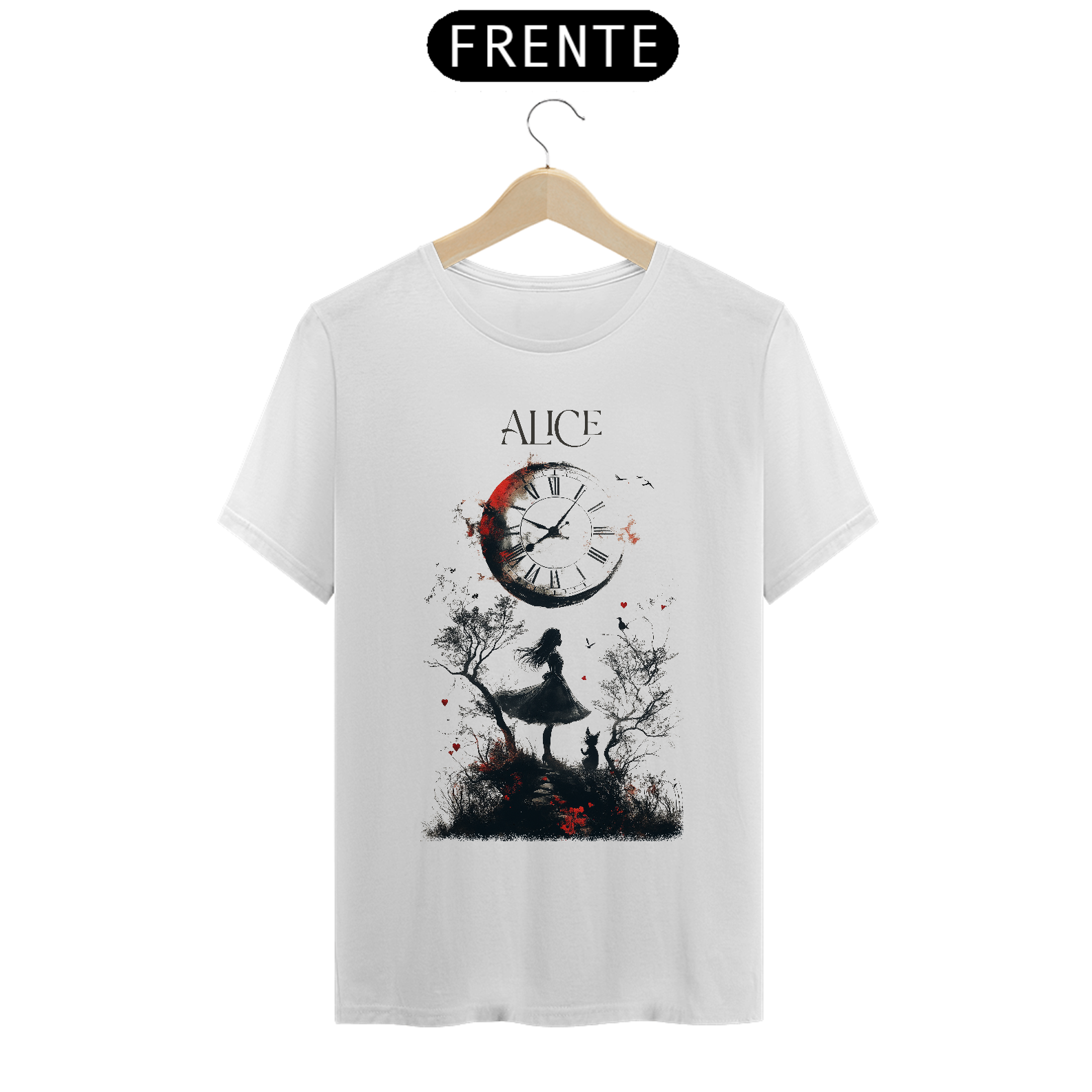 Essa camiseta é produzida em 100% algodão, com fio 30, garantindo maciez, durabilidade e um caimento perfeito. O tecido confortável e respirável torna a peça ideal para qualquer ocasião, seja para um passeio casual ou para eventos que celebram a cultura nerd e literária. Além disso, o design exclusivo da estampa realça a magia e o mistério do universo de Alice, tornando a peça um item obrigatório para fãs da obra e colecionadores.