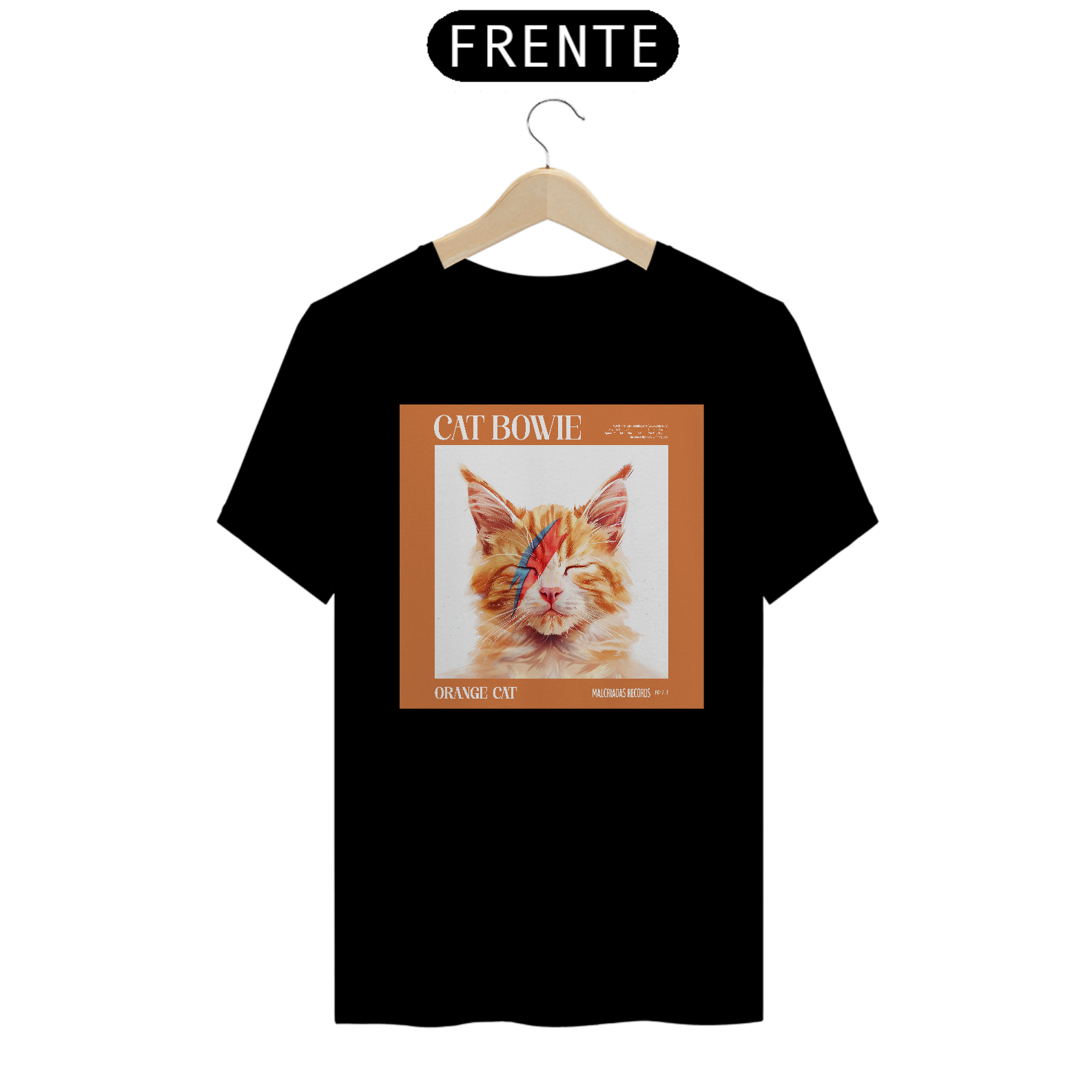 Ideal para quem busca uma camiseta descolada e cheia de personalidade, a "Cat Bowie" é uma peça única que expressa seu amor por música e gatos com estilo e originalidade. Um lançamento exclusivo da Malcriadas Records que vai conquistar os corações dos fãs de Bowie e dos adoradores de gatos.