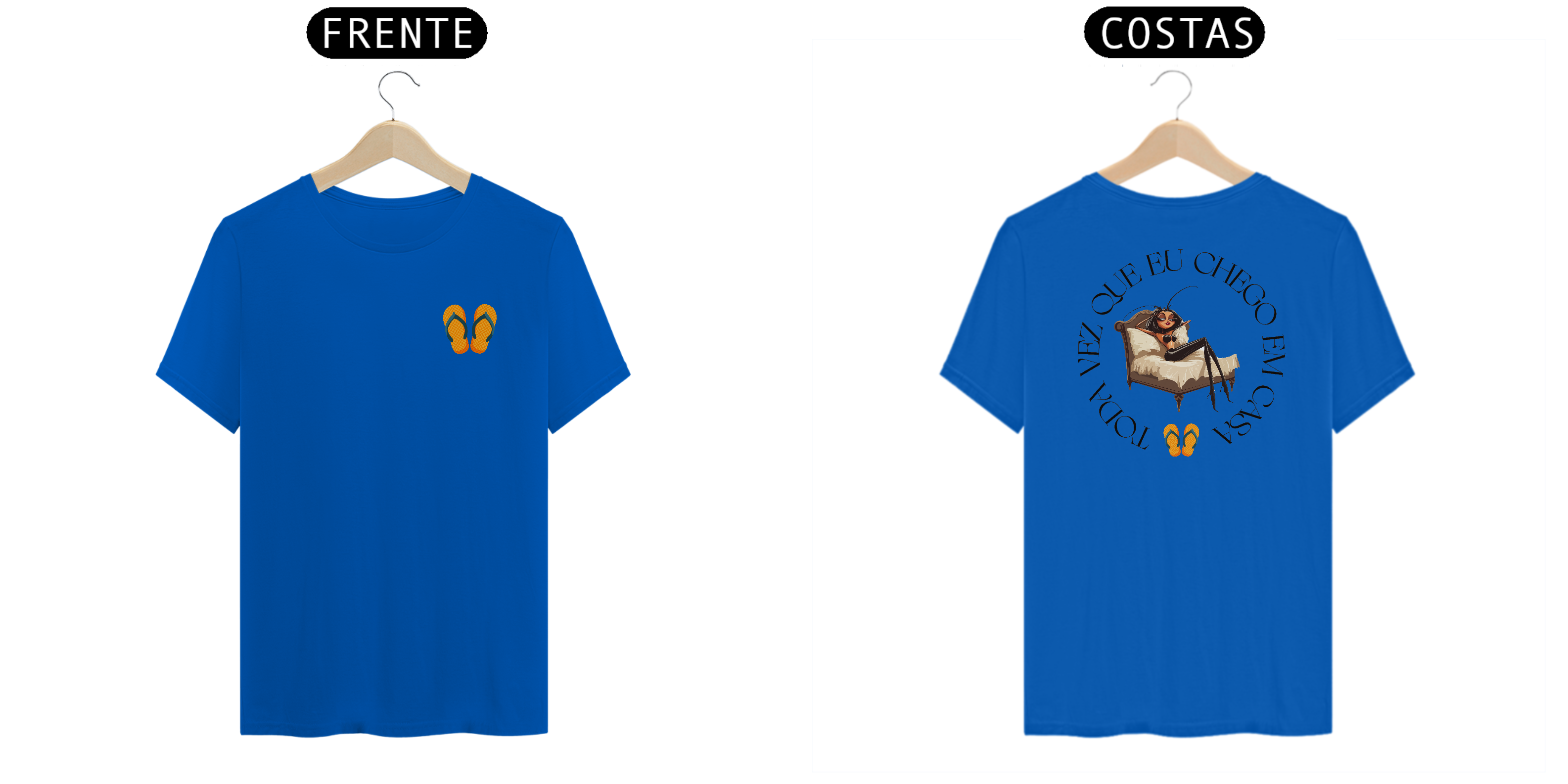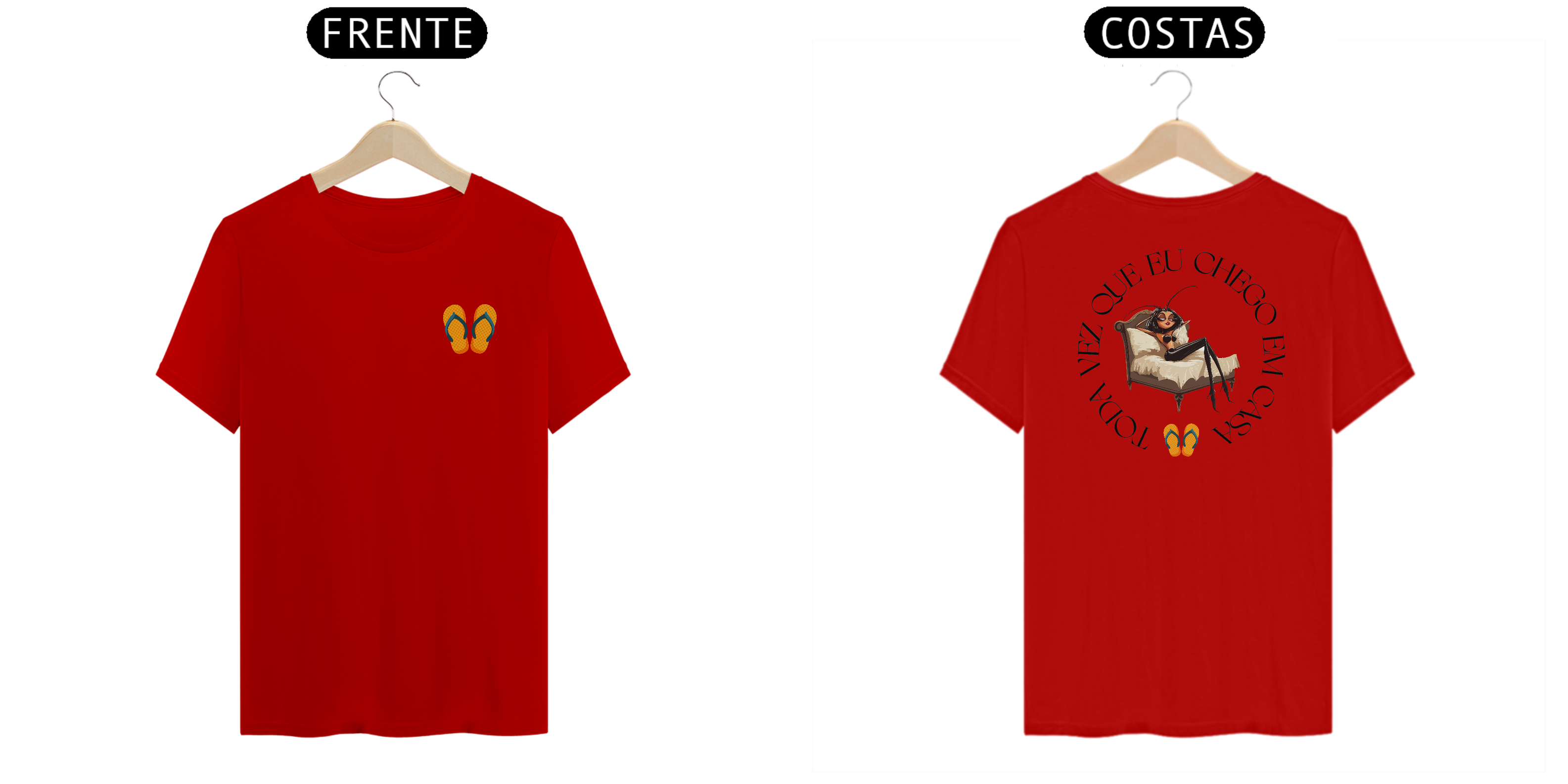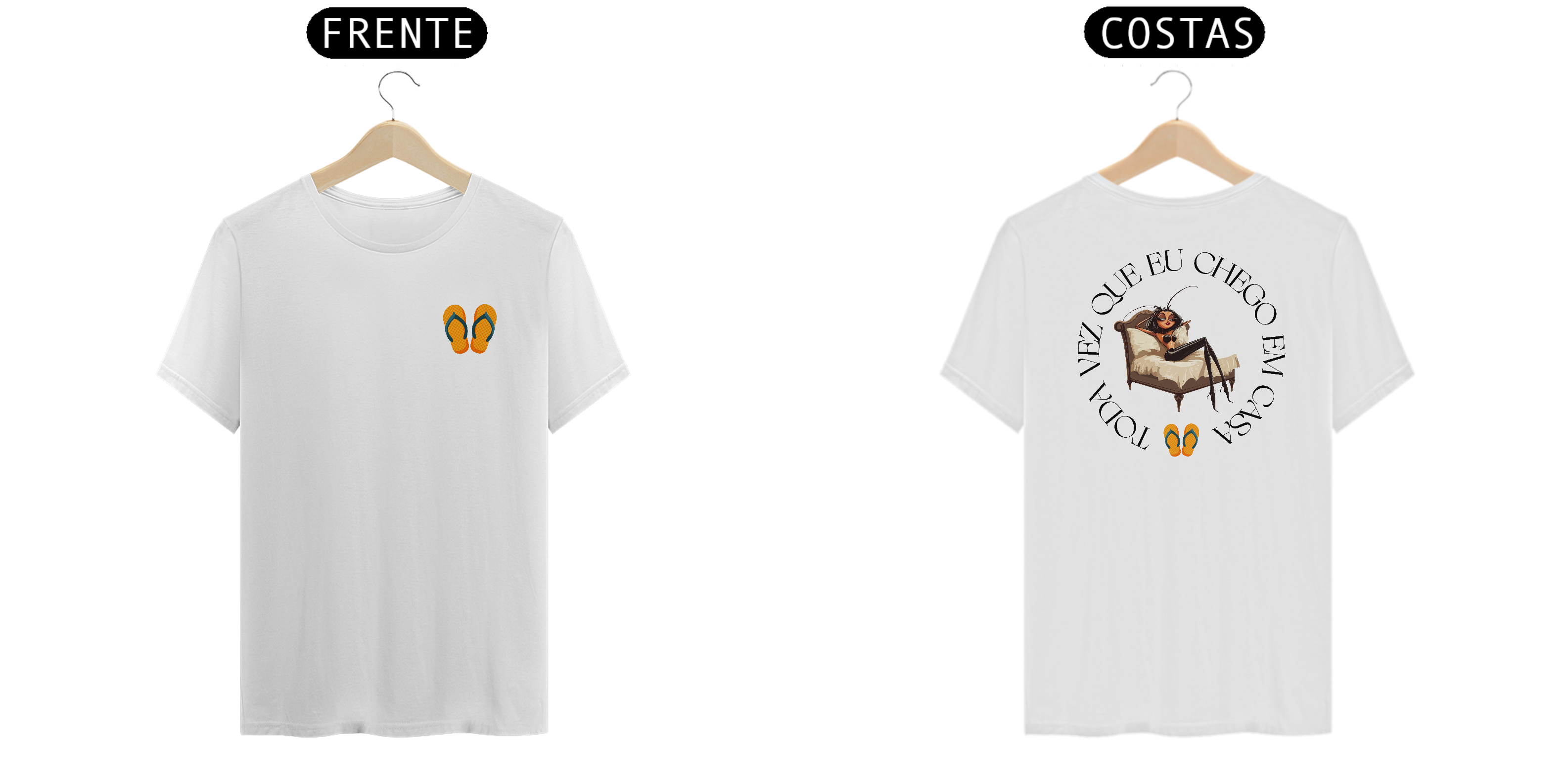 Com detalhes divertidos, como os chinelos estrategicamente posicionados, essa camiseta é a escolha perfeita para quem quer combinar nostalgia, estilo e bom humor neste verão.